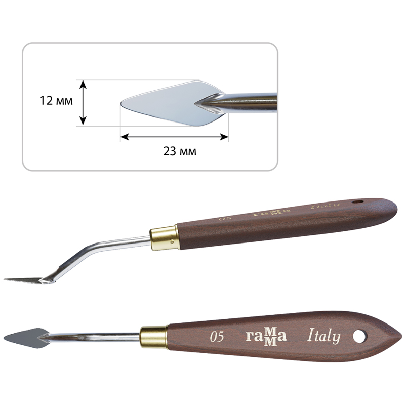 Мастихины серии «Старый Мастер» изготовлены вручную в Италии. Лезвие из нержавеющей стали прочное и упругое. Лезвие имеет специальное глянцевое покрытие для долговечной службы. Эргономичная ручка из натурального бука отполирована вручную и оснащена отверстием для хранения на подвесе. Бесшовная обойма гарантирует надежное соединение лезвия и ручки. Коллекция мастихинов представлена в 12 самых популярных видах лезвий: ромб, капля, «рыбка», овальное, прямоугольные.