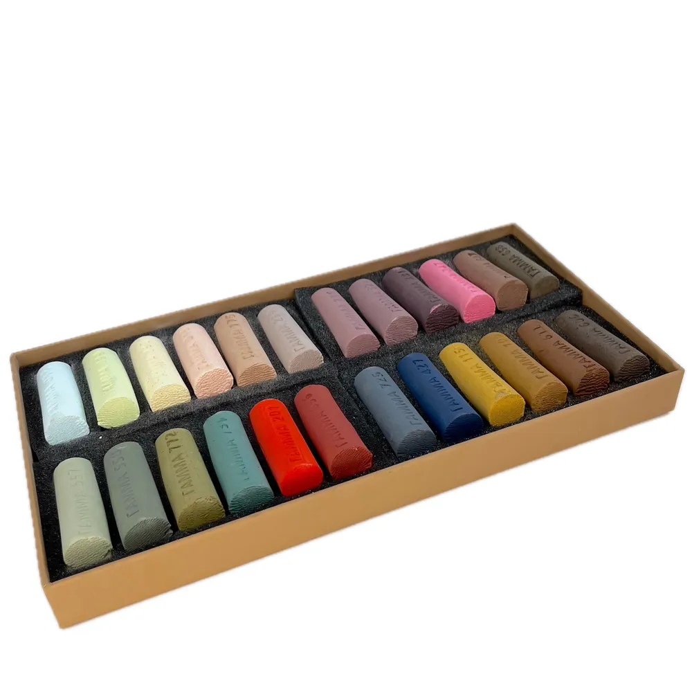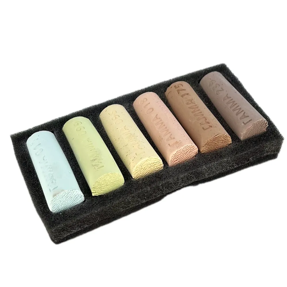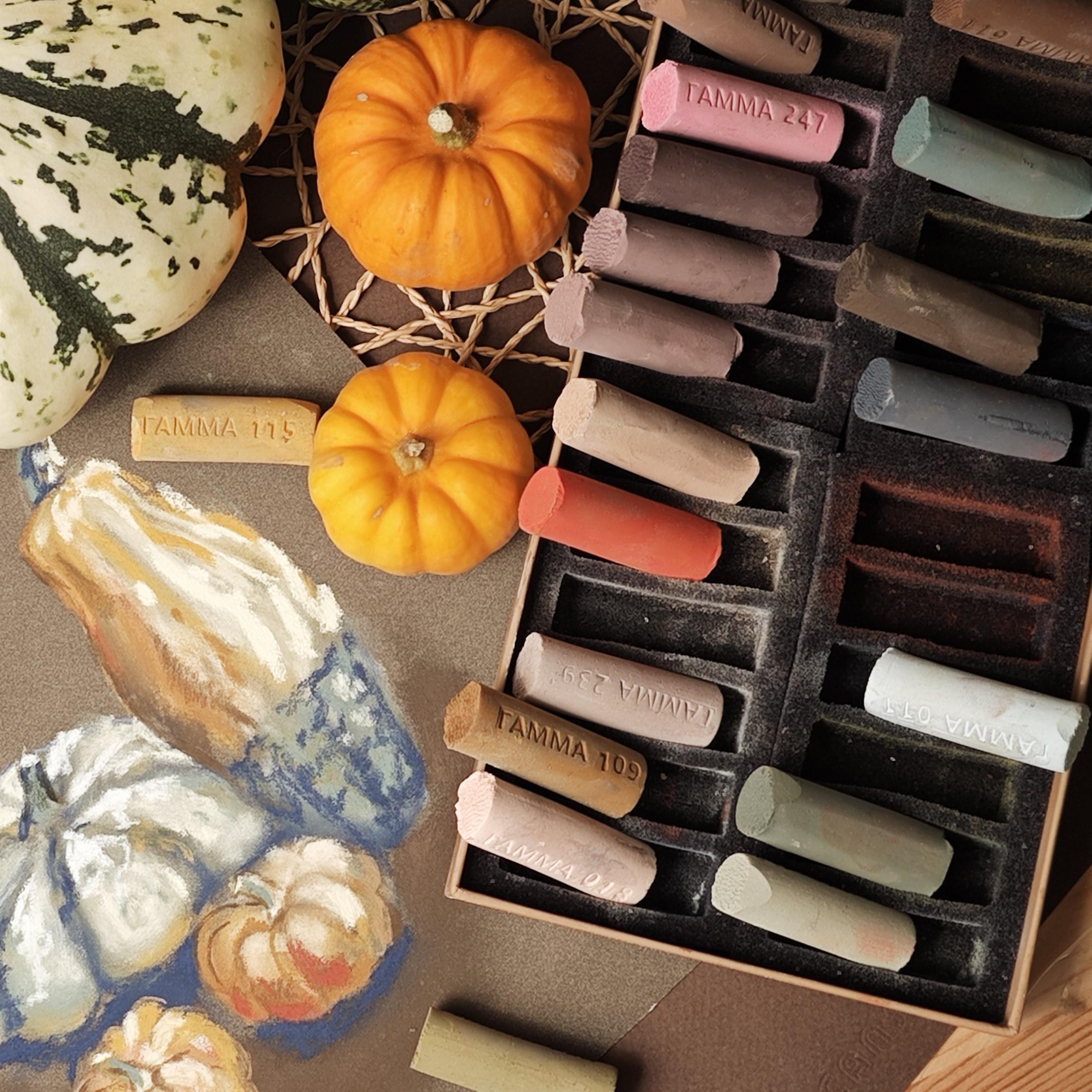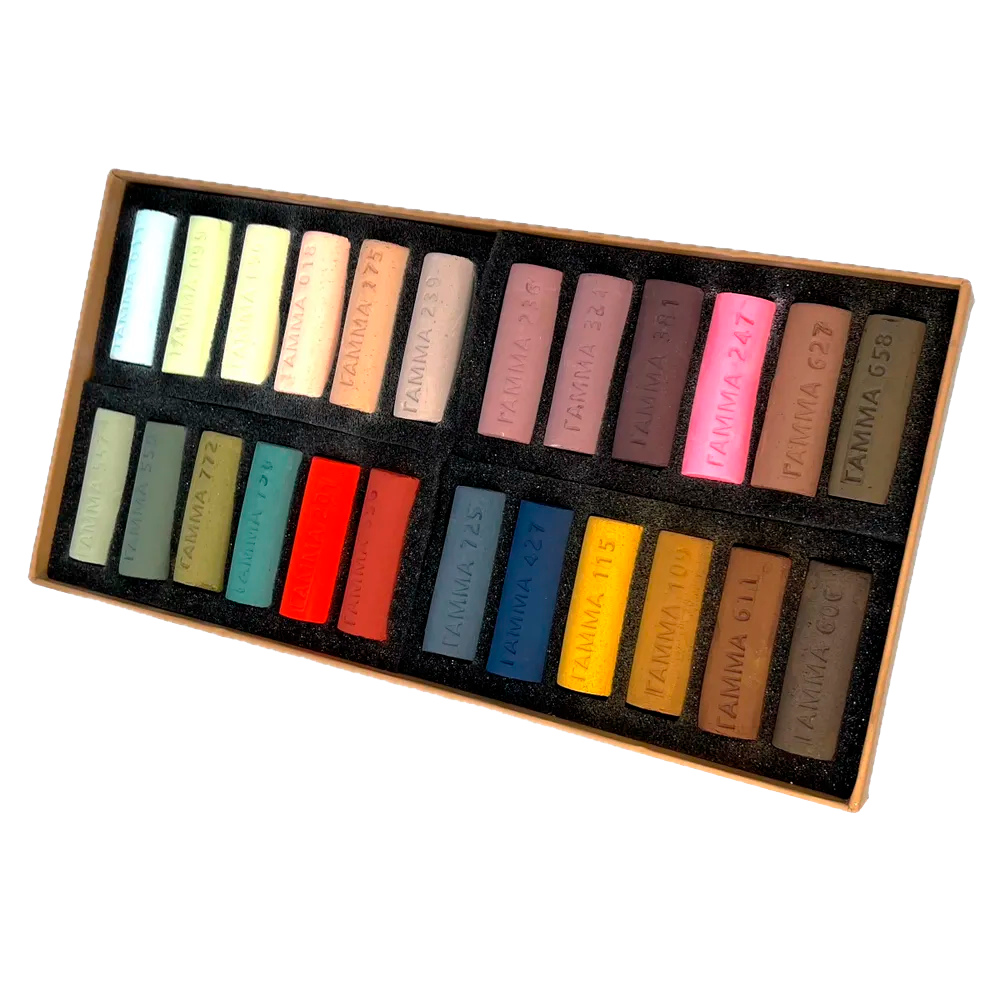 Для производства пастели используются тонкотертые пигменты и каолиновая глина высочайшего качества. Каждый мелок круглой формы оптимально мягкий и в меру хрупкий. Диаметр мелка составляет 1,5 см, а длина – 4,8 см. Художественная пастель ГАММА обладает глубиной и интенсивностью цвета. Цвета в палитре легко смешиваются между собой и создают мягкие переходы одного оттенка к другому. Цвета ровно ложатся на бумагу разных фактур. Набор упакован в картонную коробку.