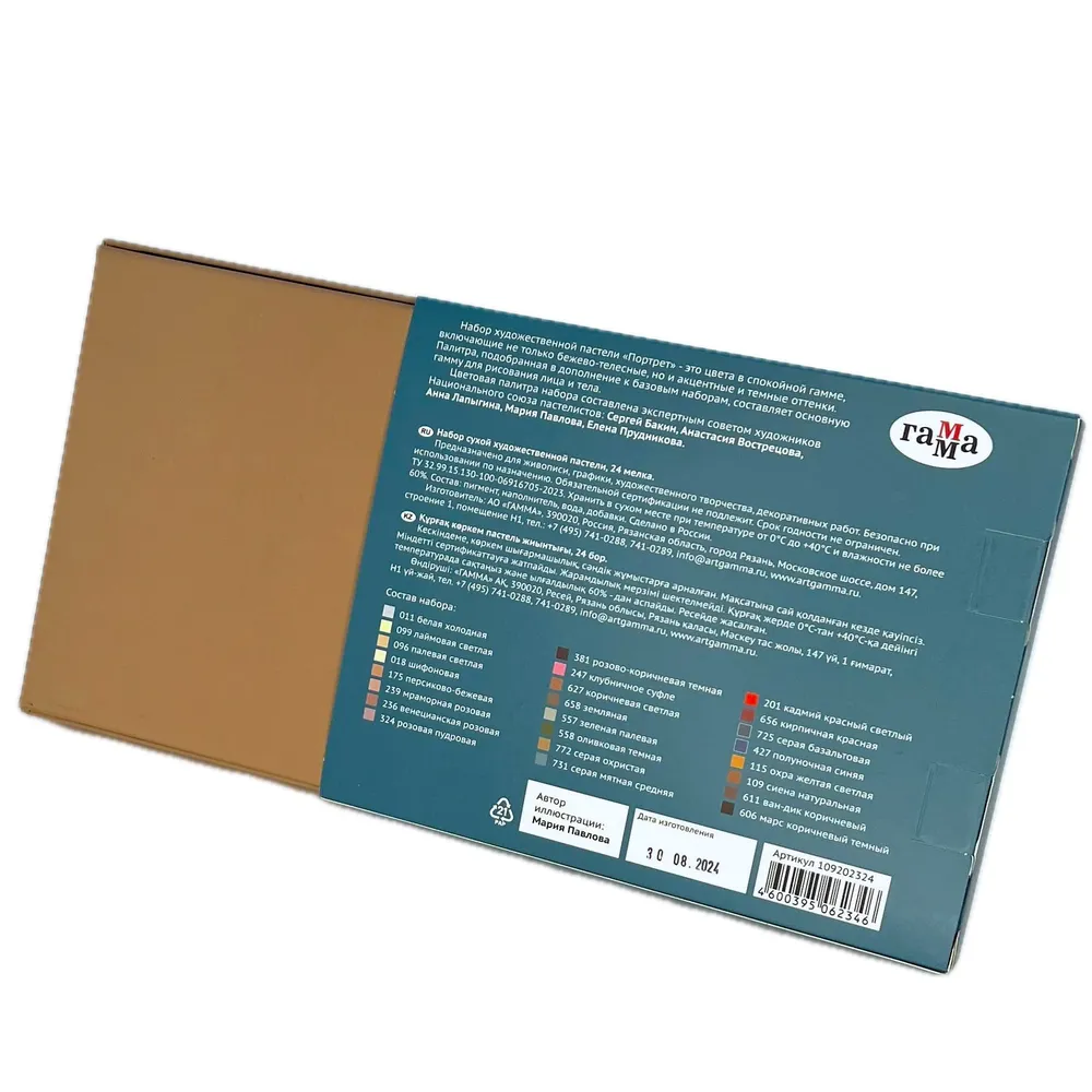 Набор художественной пастели «Портрет» - это цвета в спокойной гамме, включающие не только бежево-телесные, но и акцентные и темные оттенки. Палитра, подобранная в дополнение к базовым наборам, составляет основную гамму для рисования лица и тела. Набор подходит для профессионалов и начинающих художников. Цветовая палитра набора собрана экспертным советом художников Национального союза пастелистов.