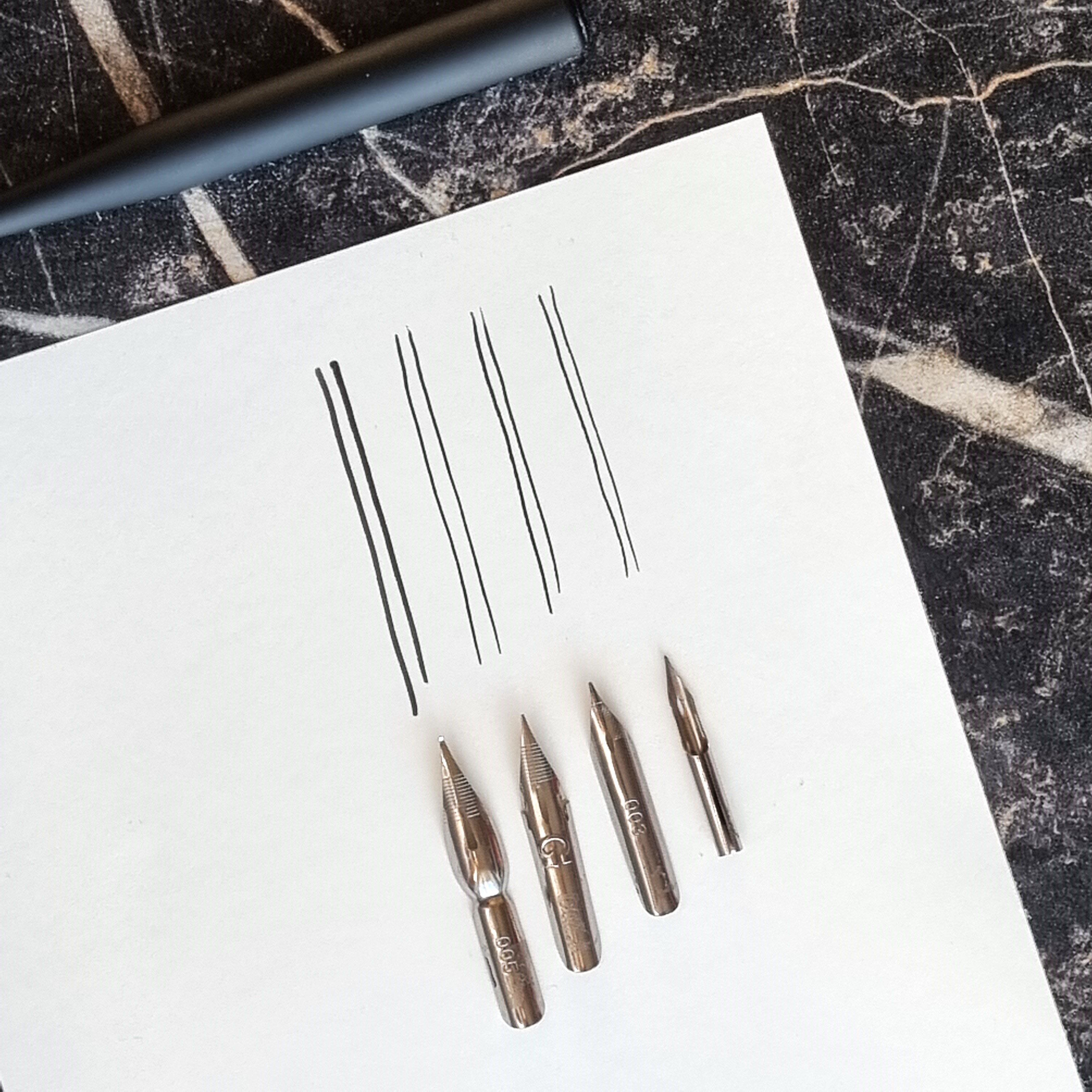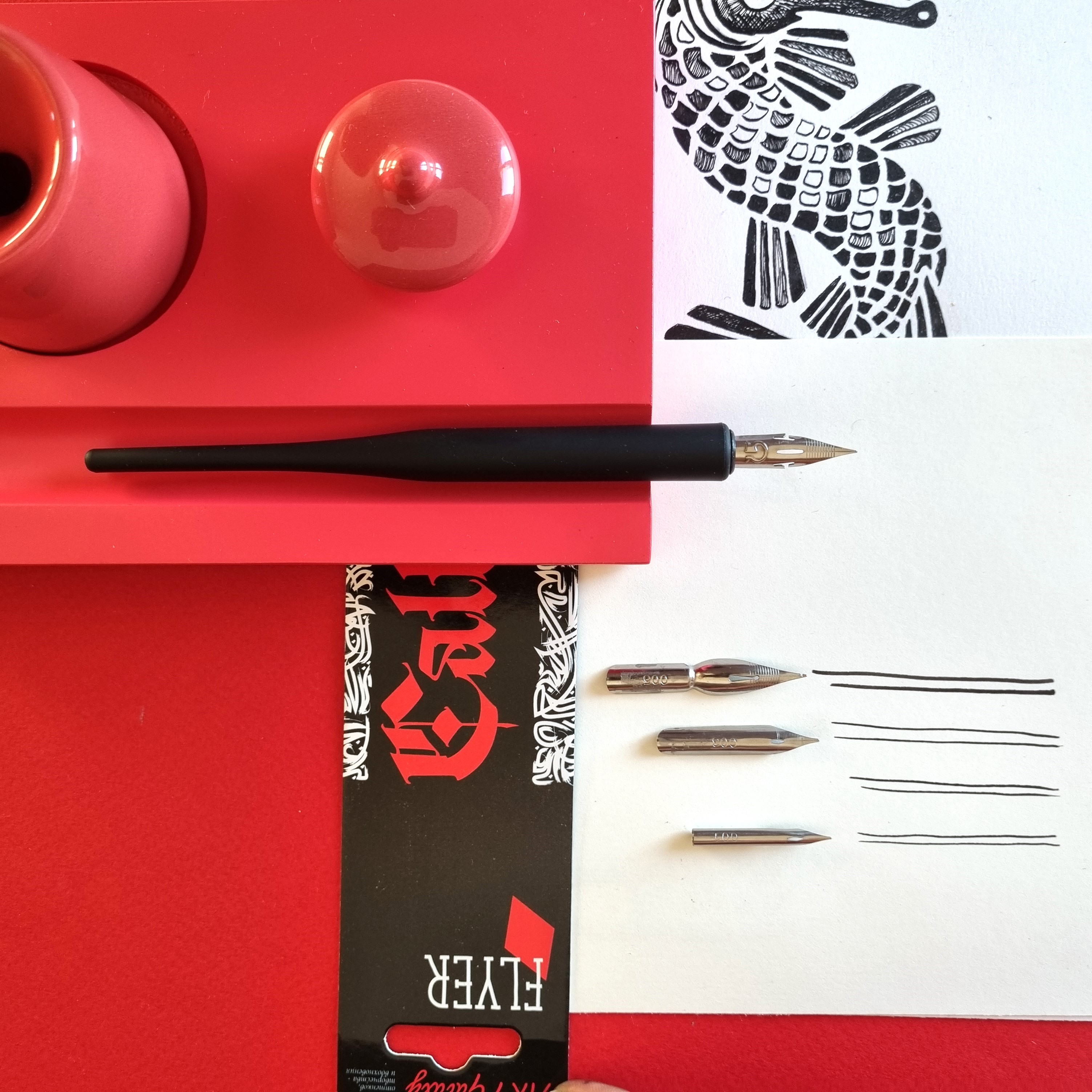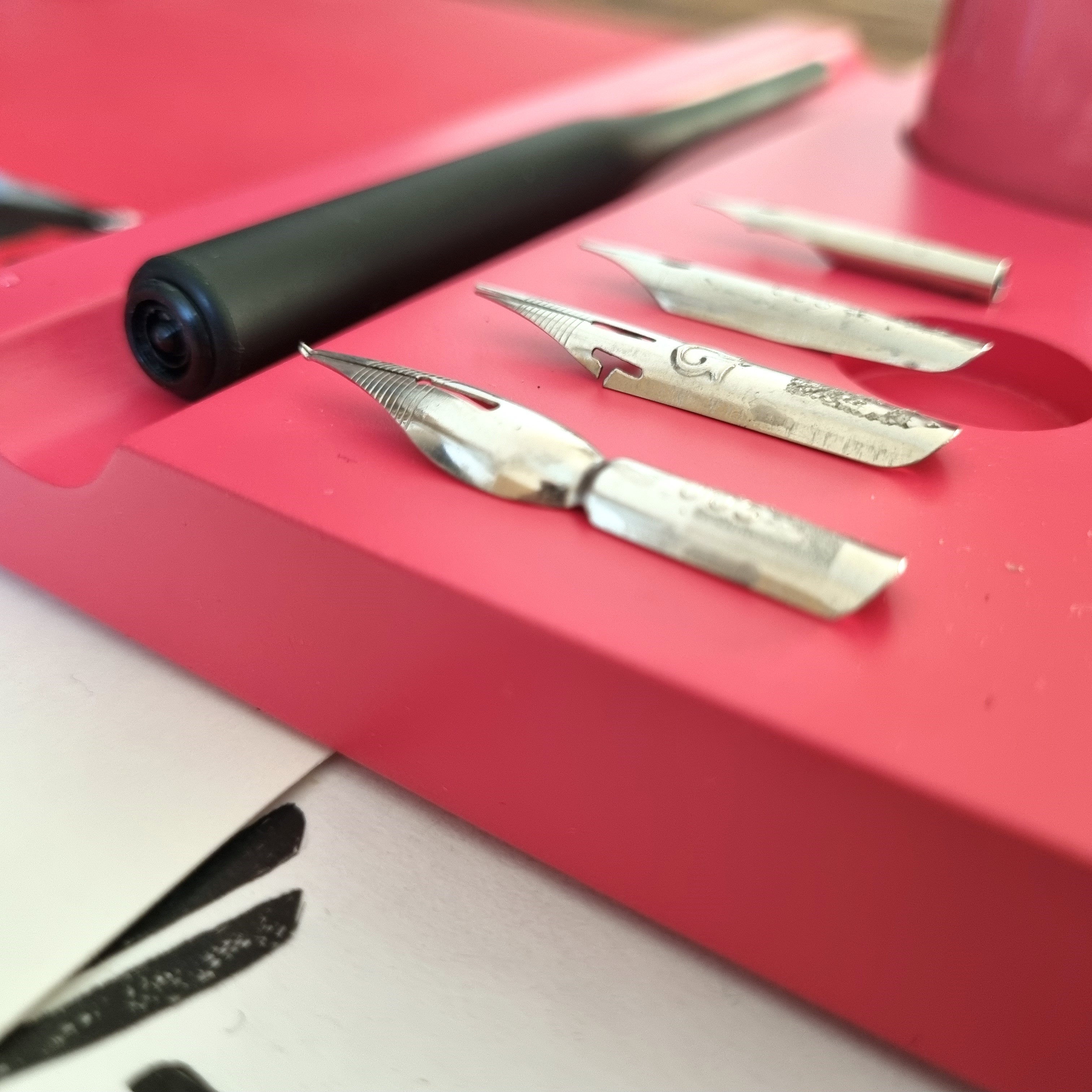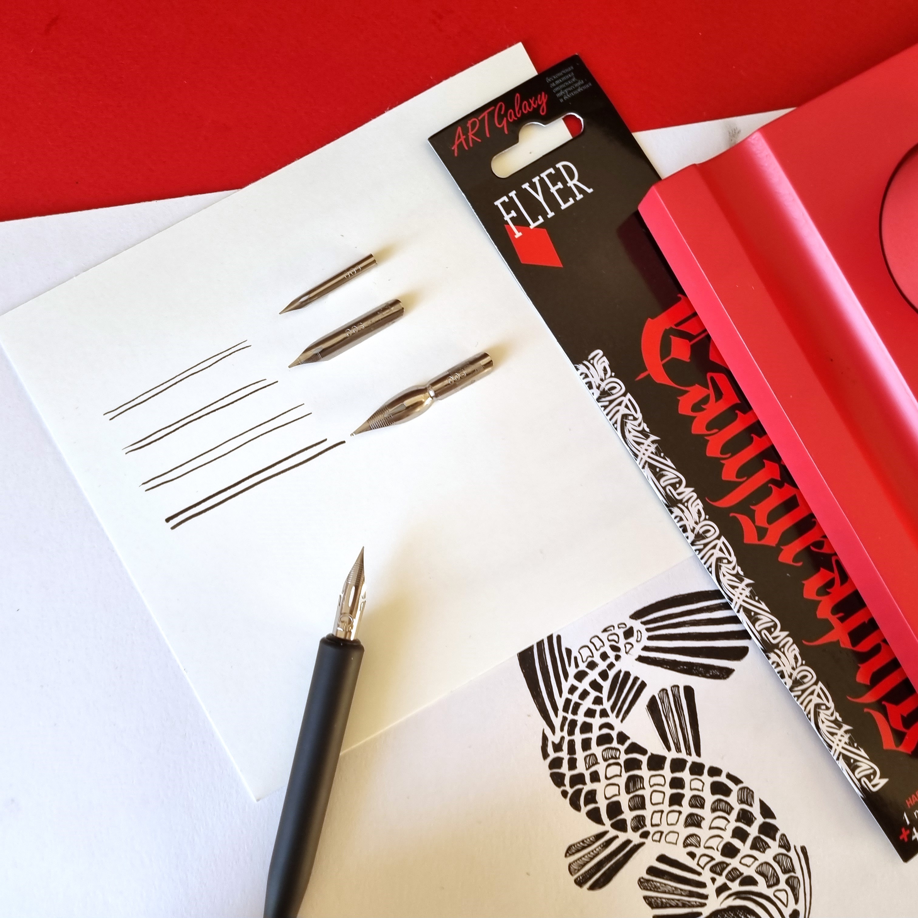 Набор для каллиграфии, 5 перьев, держатель, тушь в картонной коробке.