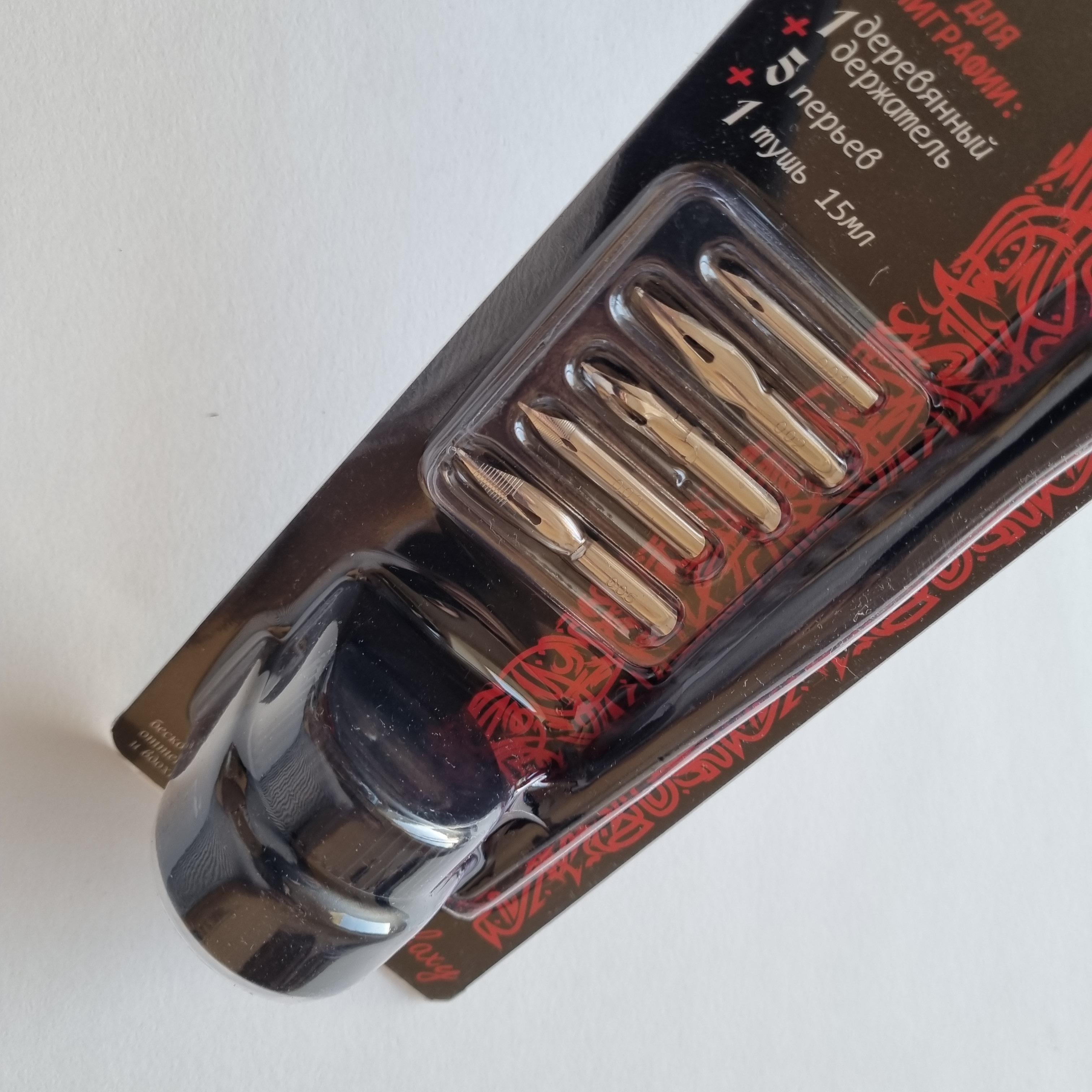 Набор для каллиграфии в блистере 7 предметов (деревянный держатель+5 перьев+ черные чернила