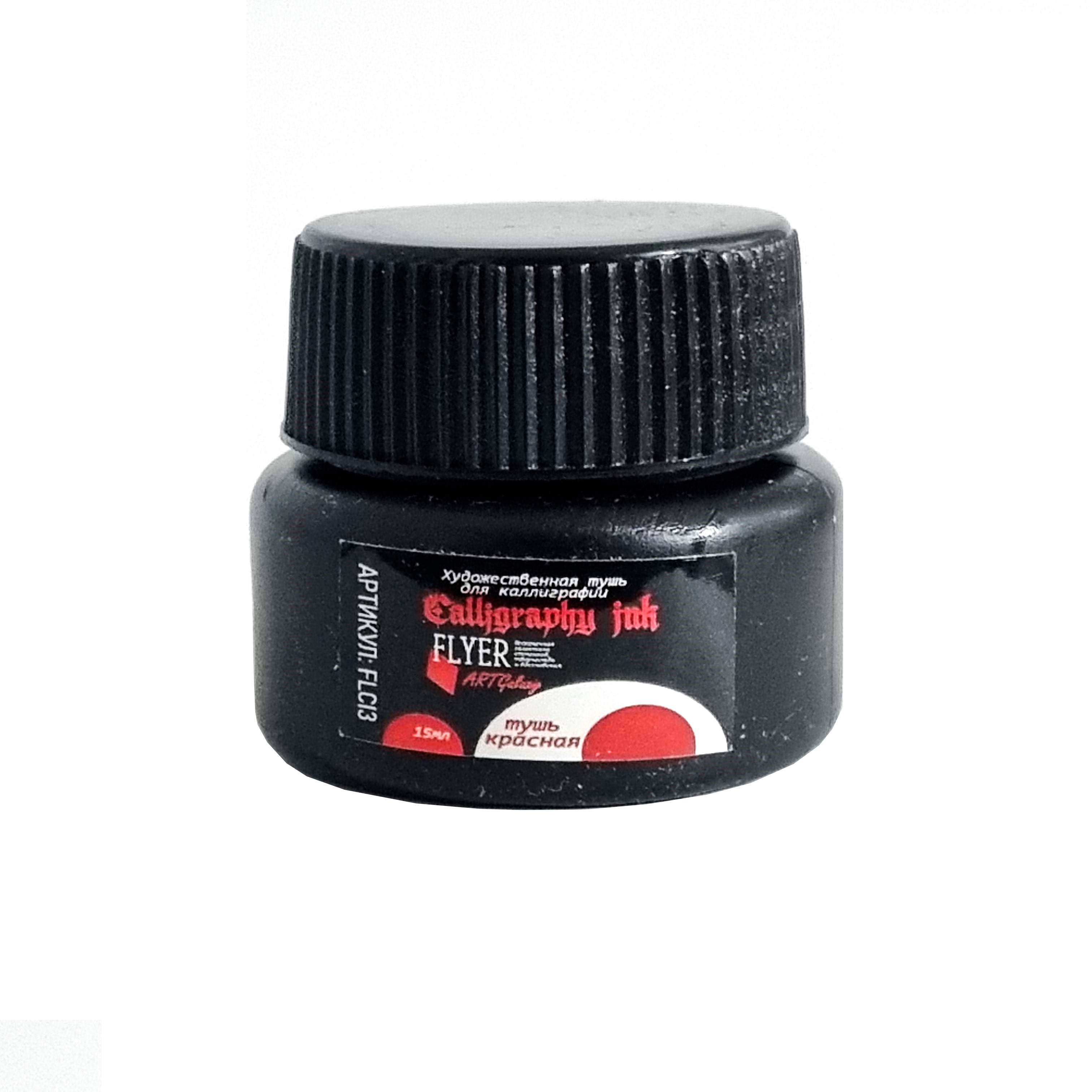 Художественная тушь для письма и рисования на водной основе. Цвет - красный, 15мл.