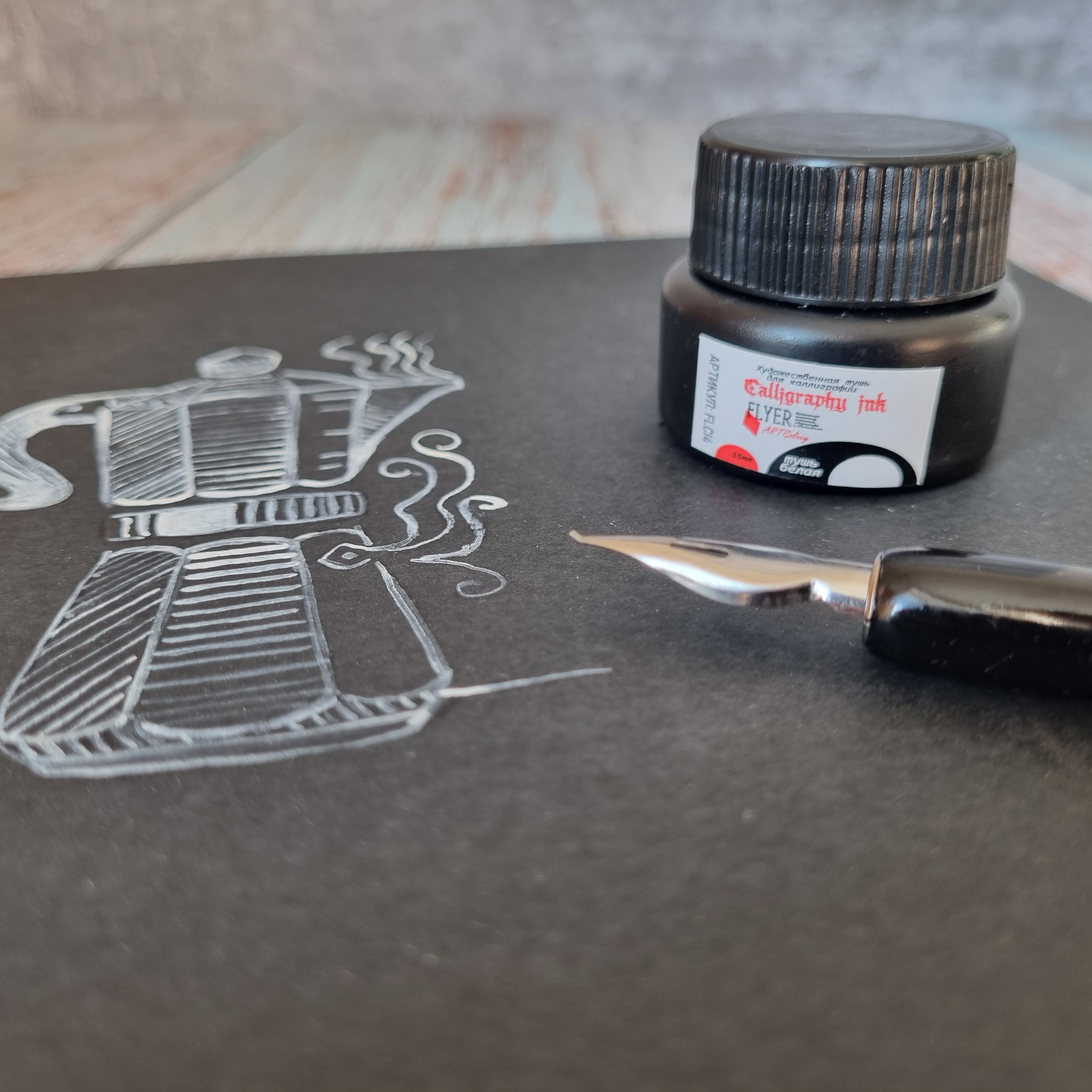 Тушь подходит для каллиграфии и художественных работ с прорисовыванием тонких элементов, а также для скетчинга.