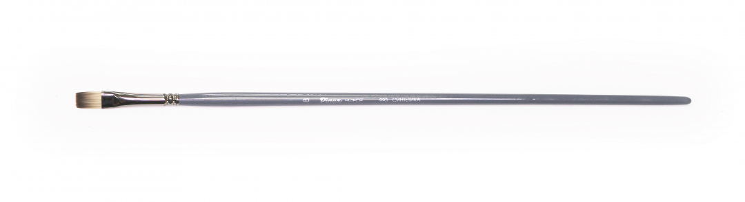 Кисть плоская укороченная это контурная кисть, особенно упругая для абсолютного контроля мазка. Используется для создания коротких мазков и эффекта пастозной живописи, хорошо выделяет контур, облегчает плавный переход одного цвета в другой. Также пригодится в случаях, когда необходимо воспользоваться малым количеством краски.