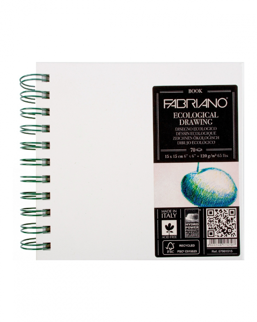 Блокнот для зарисовок EcologicalDrawingBook 120г/м.кв 15x15см мелкозернистая 70л спираль по короткой стороне