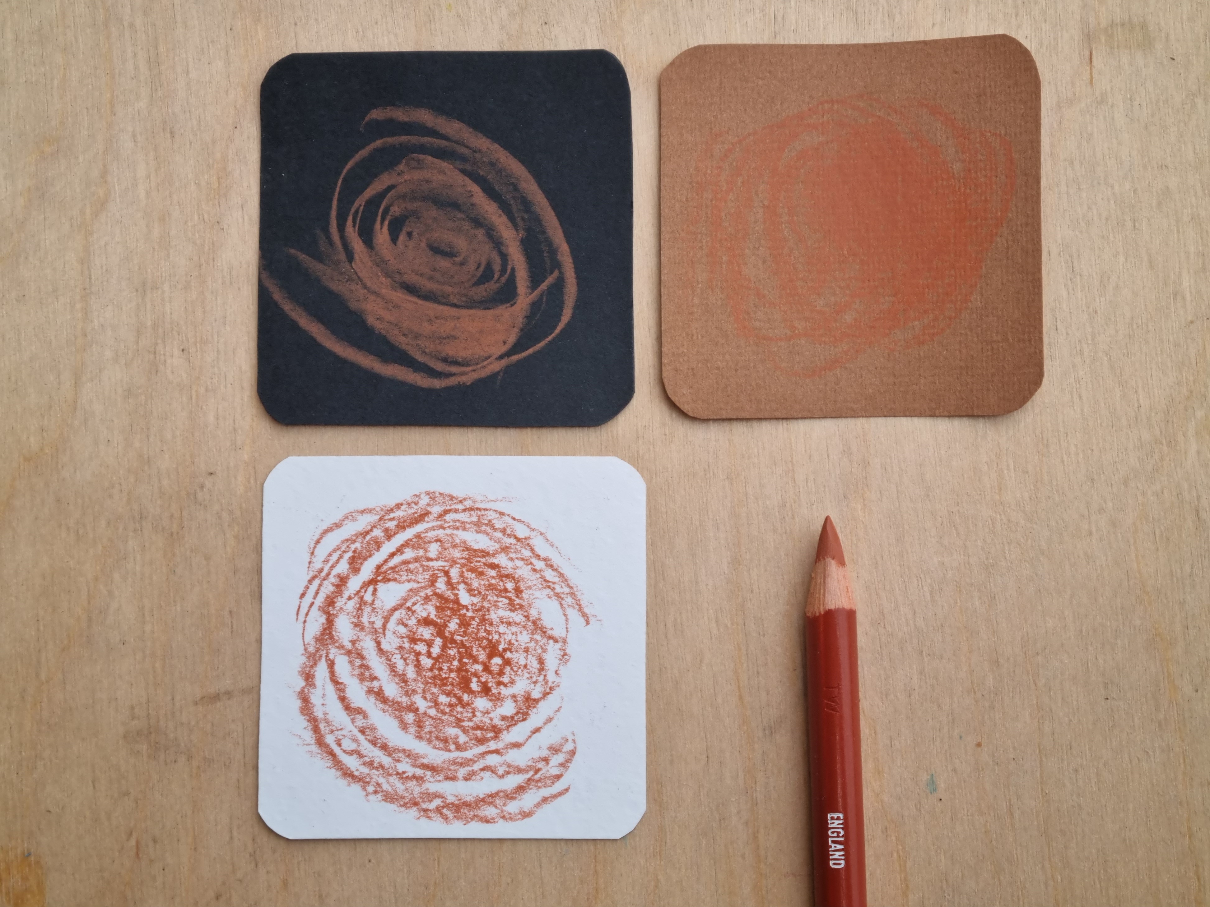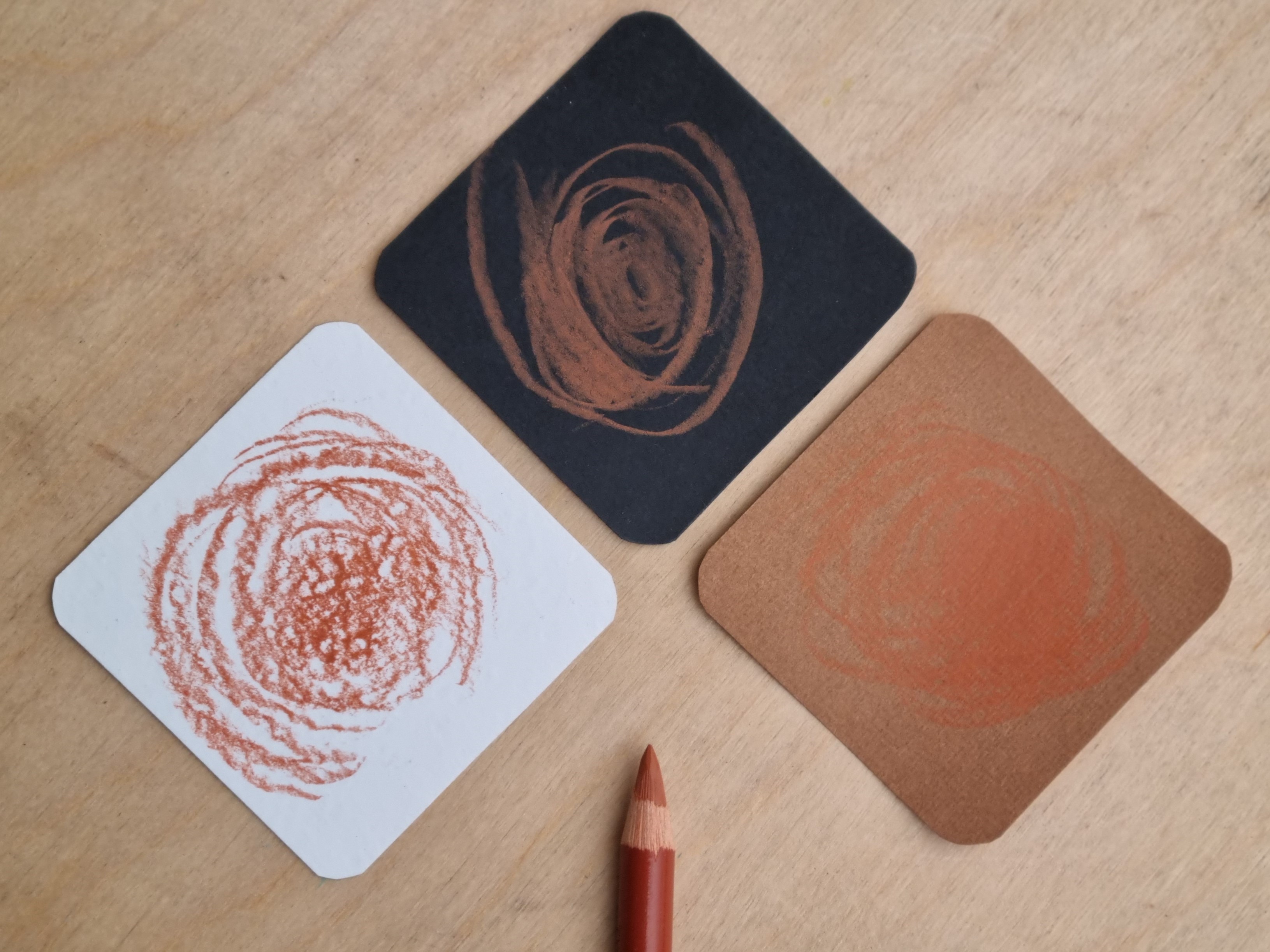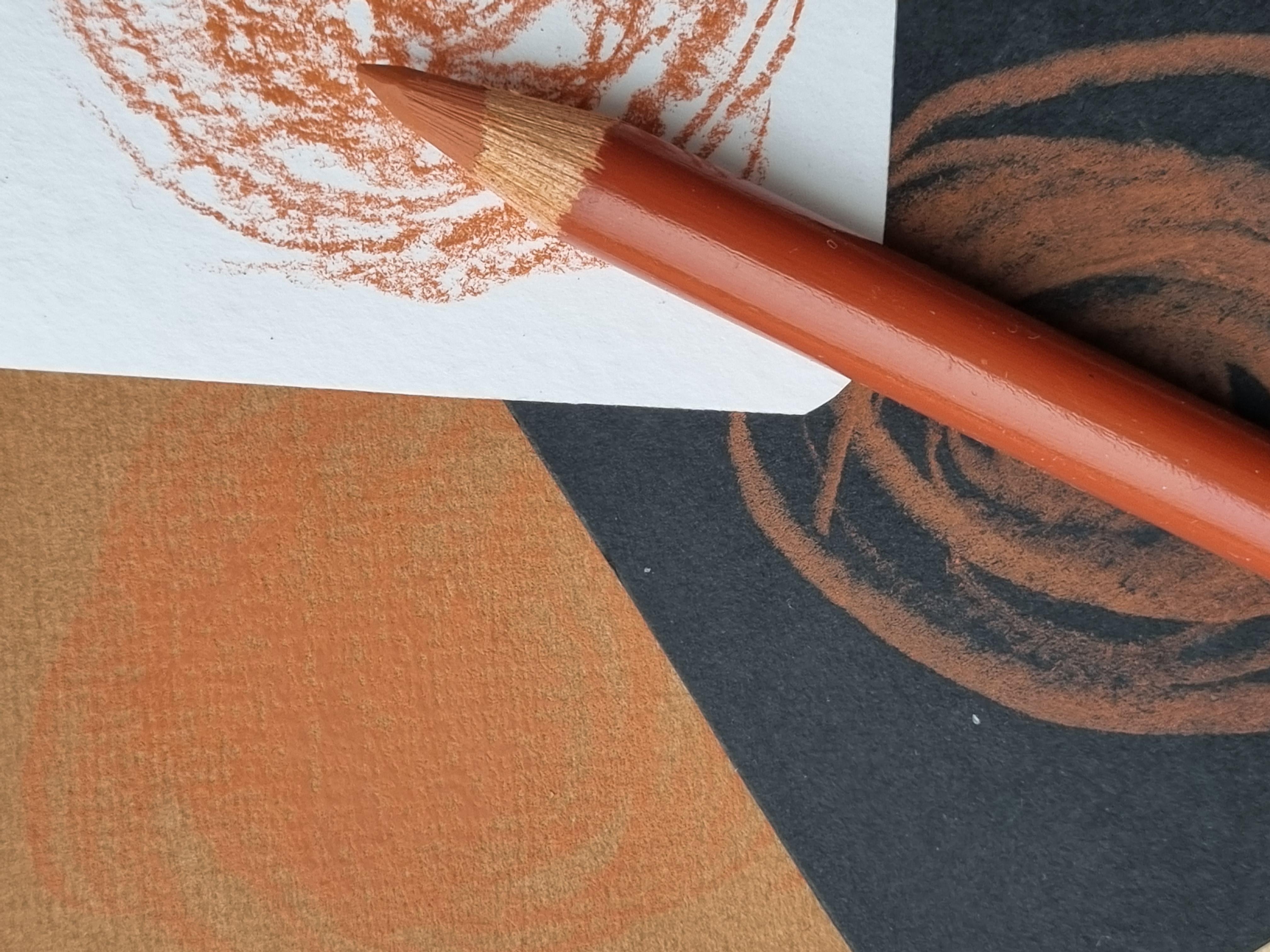 Если наносить штрихи данным карандашом по масляной и восковой пастели, то он отдает в своем штрихе гораздо больше пигмента, нежели во время рисования на бумаге, таким образом, цвет будет глубже и интенсивнее.