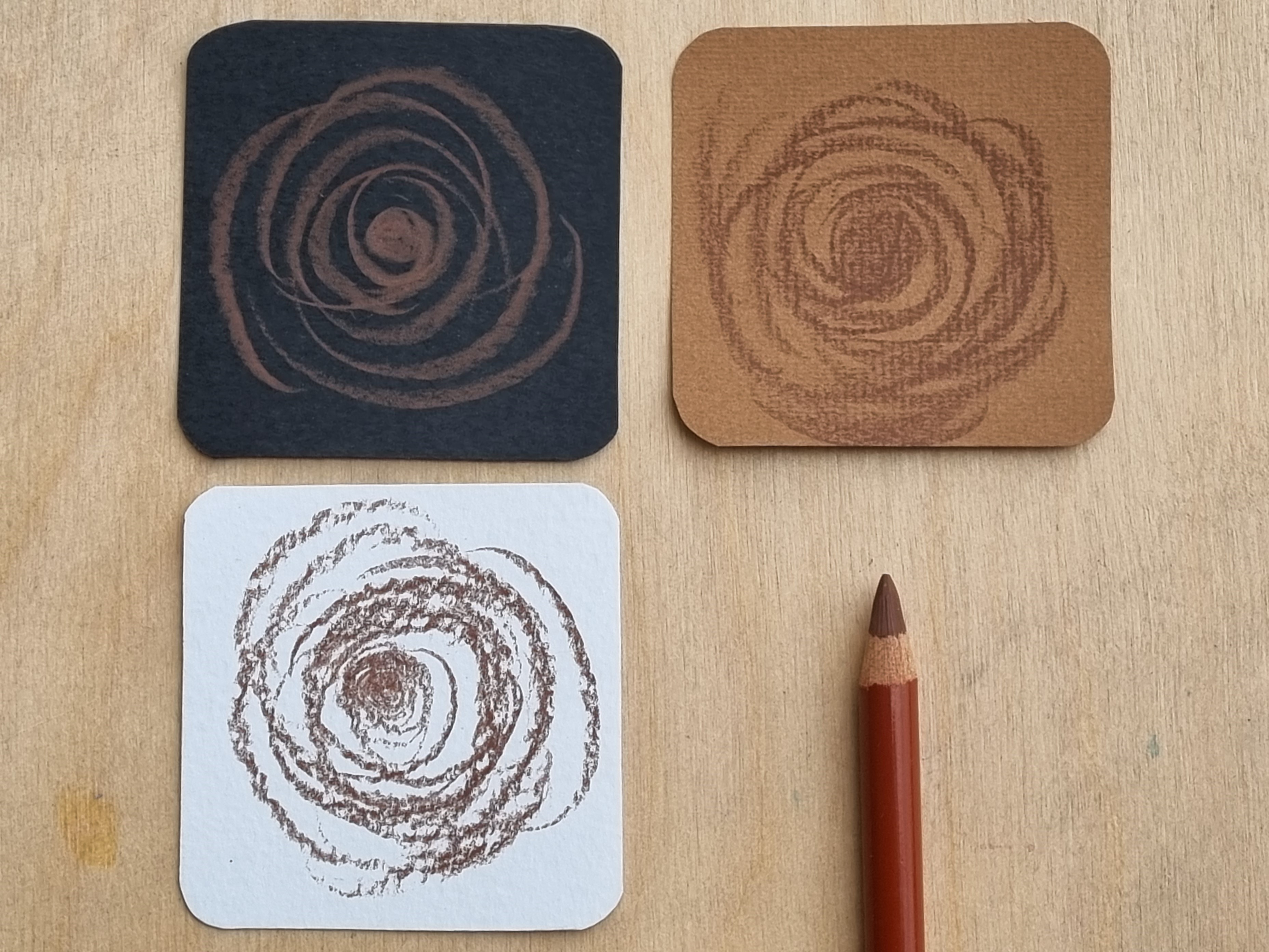 Если наносить штрихи данным карандашом по масляной и восковой пастели, то он отдает в своем штрихе гораздо больше пигмента, нежели во время рисования на бумаге, таким образом, цвет будет глубже и интенсивнее.