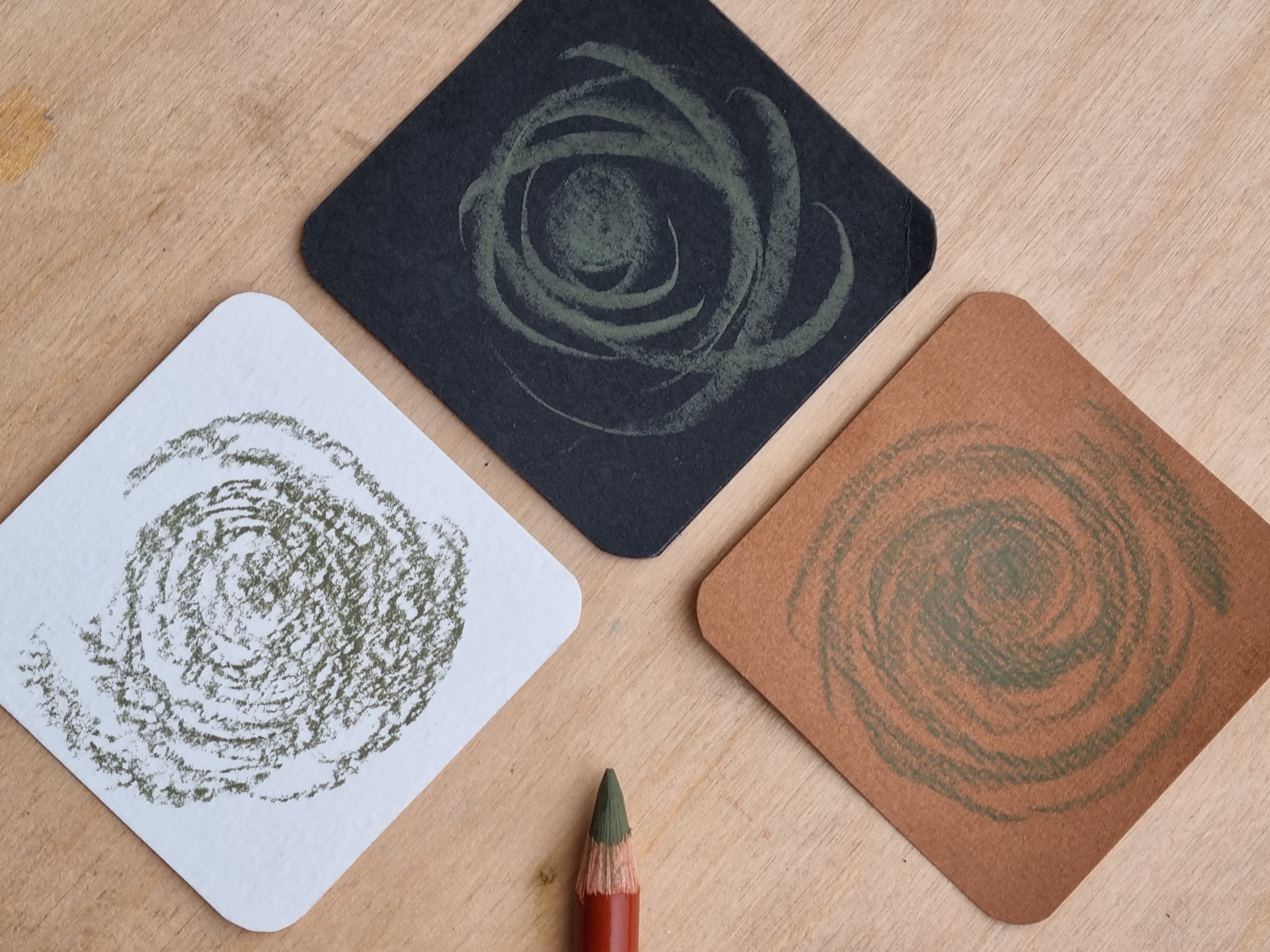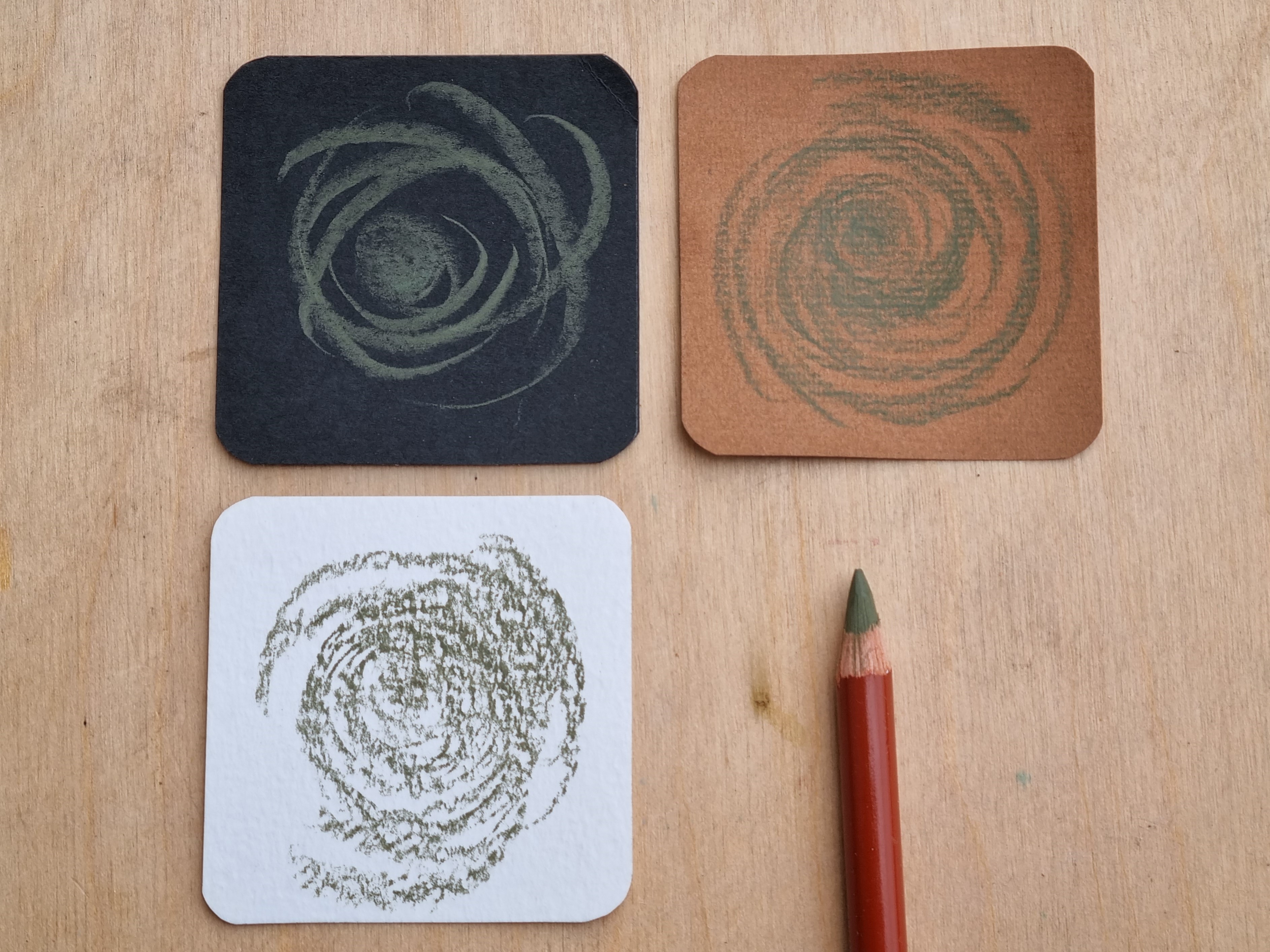 Если наносить штрихи данным карандашом по масляной и восковой пастели, то он отдает в своем штрихе гораздо больше пигмента, нежели во время рисования на бумаге, таким образом, цвет будет глубже и интенсивнее.