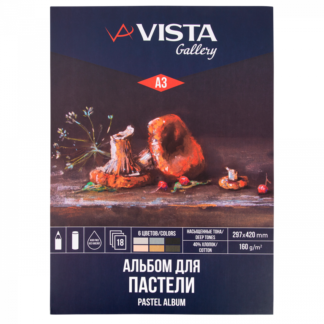 Альбом с бумагой для пастели Vista-Artista, насыщенные тона, А3, 18 листов, 160 г/м2.
