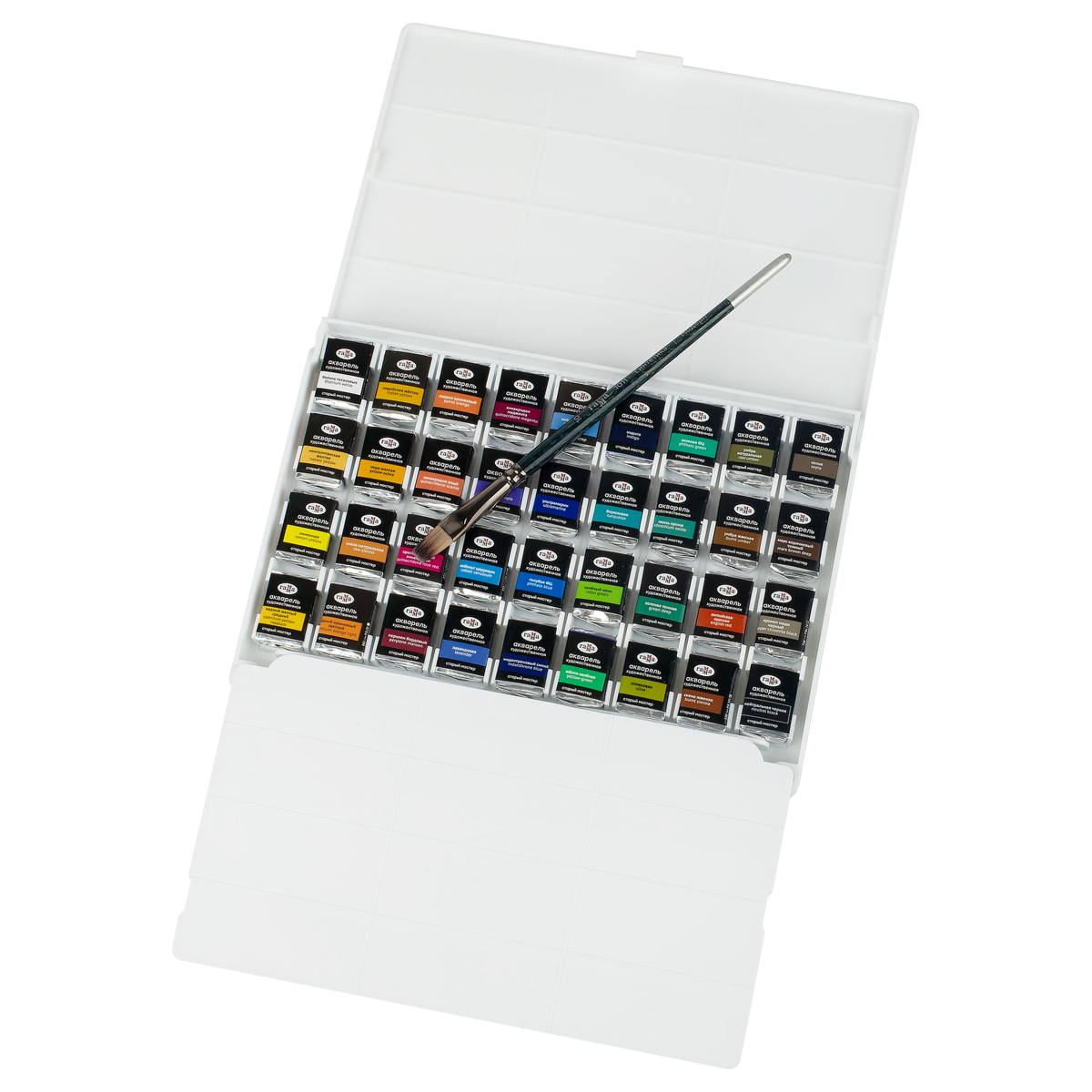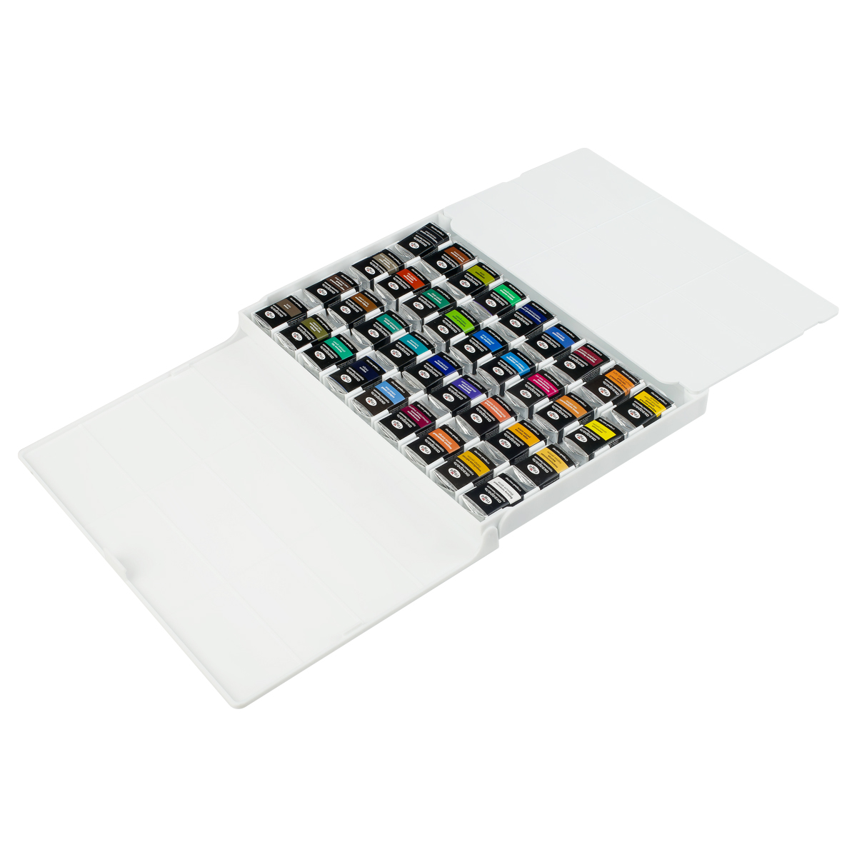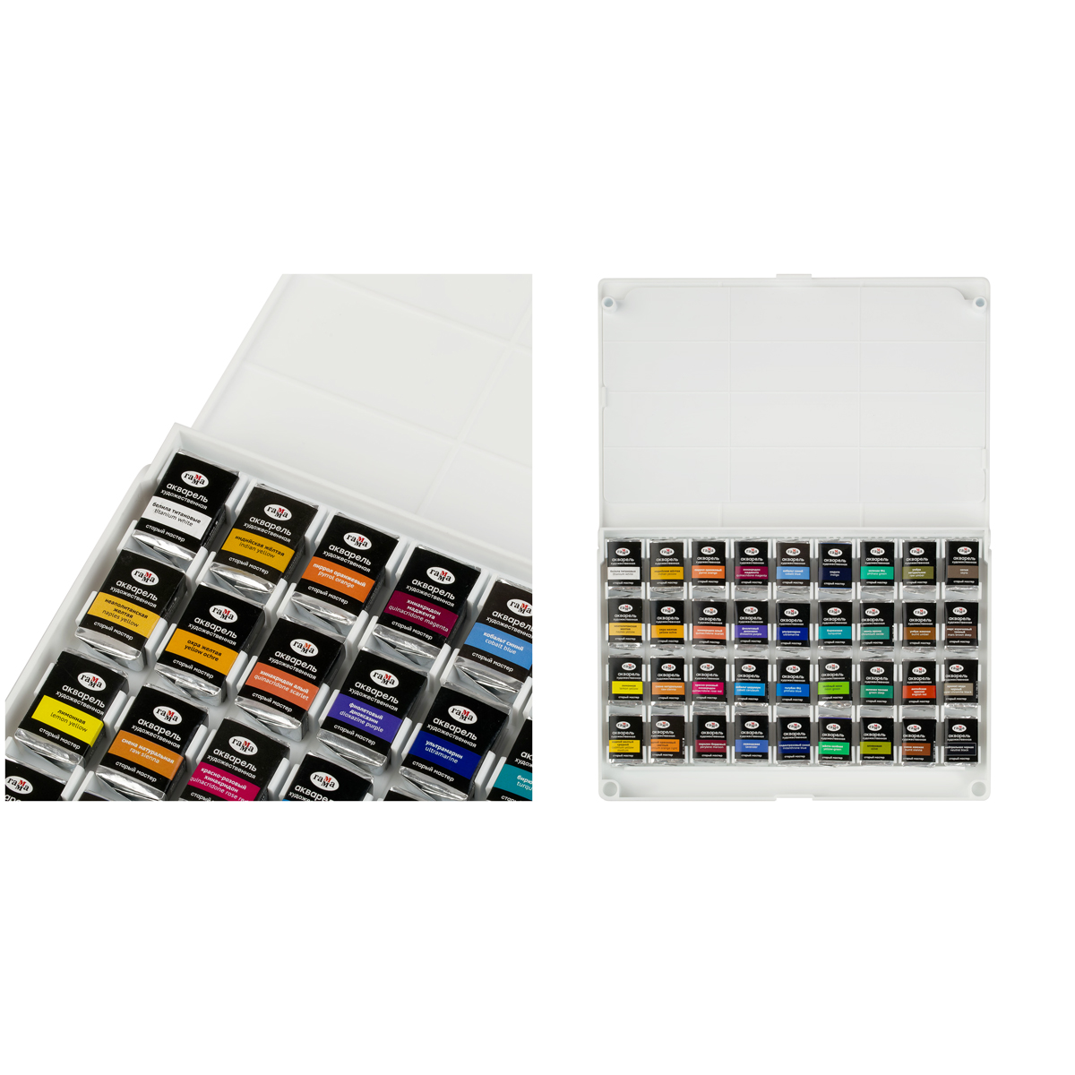 Акварельные краски продаются в наборе 36 шт в кюветах 2,6 мл. Набор представлен в пластиковом пенале с удобными креплениями кювет, палитрой и также присутствует место под кисть. Такой формат удобен для пленэра или студии. Акварельные краски профессиональной серии "Старый мастер" разработаны в собственной исследовательской лаборатории завода. Краски изготовлены на основе органических и неорганических пигментов и гуммиарабика высшего качества. Цвета акварельных красок звонкие, чистые, прозрачные. Краски высокопигментированные, интенсивные, легко набираются на кисть. Маркировка светостойкости, колор-индекса и укрывистисти указана на упаковке.