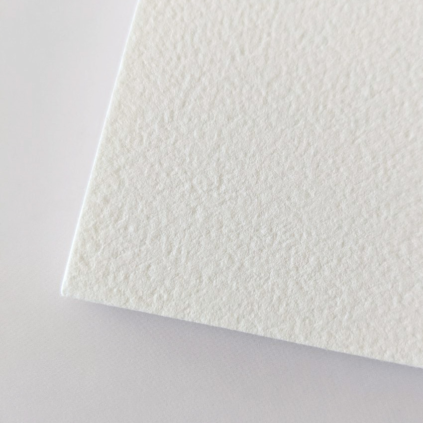 Наличие хлопка в составе и повышенная плотность бумаги делают ее идеальной основой для работы акварелью, при высыхании она не деформируется, краска будет хорошо впитываться, что позволит наносить ее в несколько слоев. Бархатистая, фактурная поверхность не только приятна тактильно, но и позволит создавать красивые акварельные эффекты.