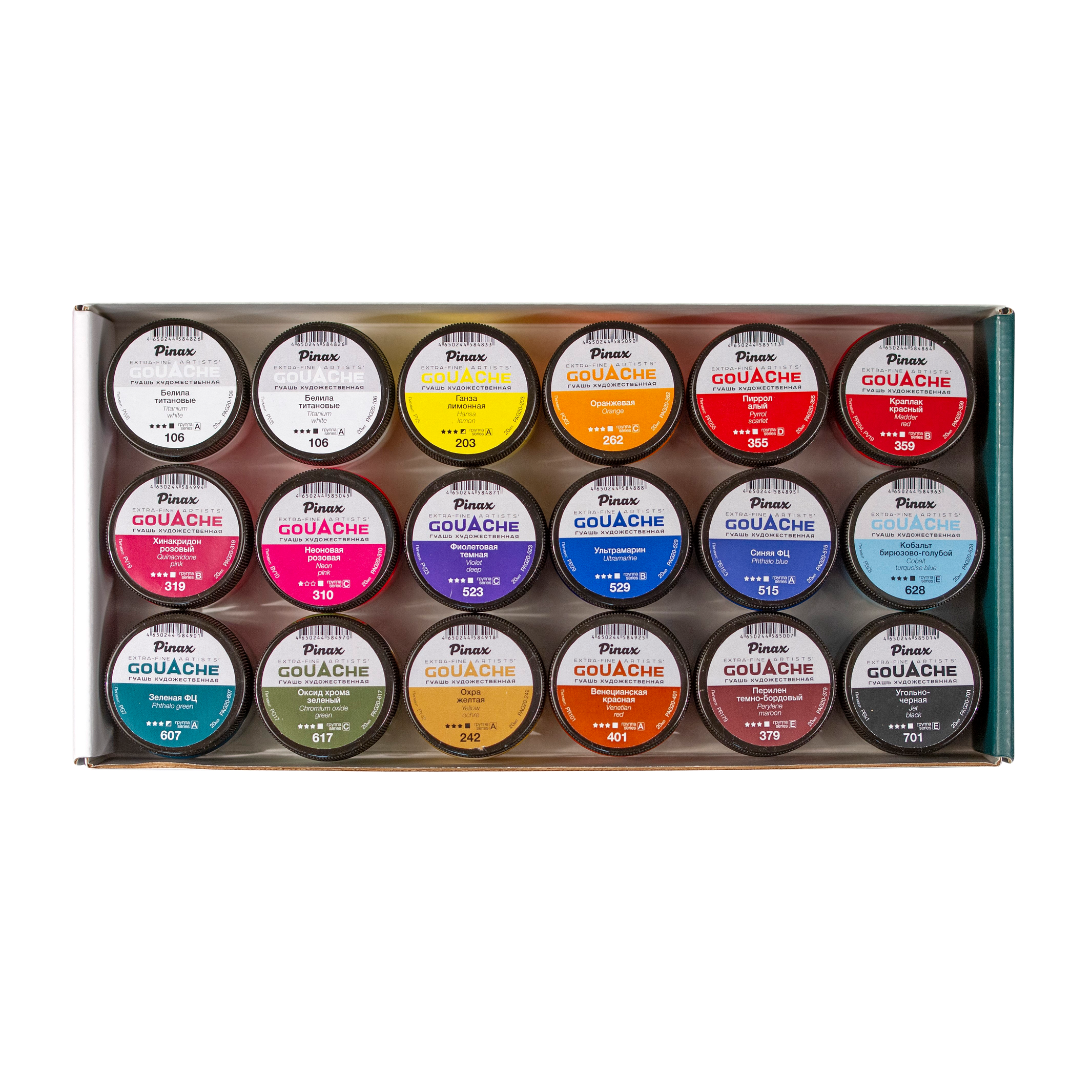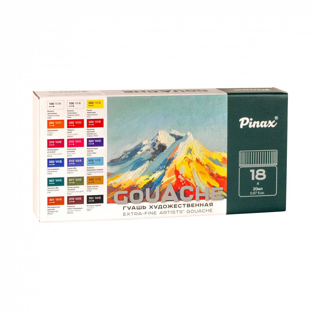 Набор гуашь художественная Pinax, 18 цветов, 20мл, картон
