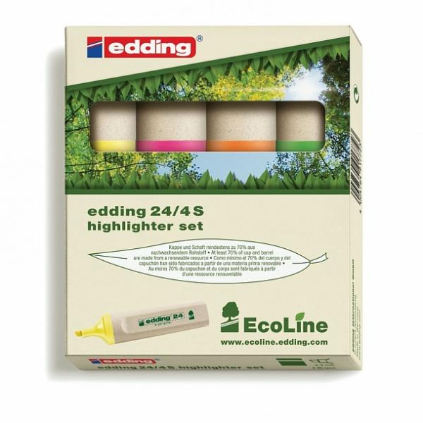 Набор текстовыделителей EcoLine, клиновидный наконечник, 2-5 мм, 4 цвета в наборе, картонная коробка Ассорти