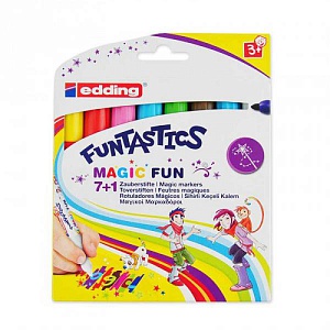Набор детских фломастеров Edding "13 FUNTASTICS" – MAGIC FUN с “магическими” чернилами, меняющими свой цвет после перерисовки чернил ( в наборе фломастер белого цвета). Цвет корпуса соответствует цвету чернил, цвет колпачка – цвету после перерисовки. Чернила фломастера на основе пищевых красителей, абсолютно безвредных для здоровья детей, легко смываются с рук и отстирываются с одежды.