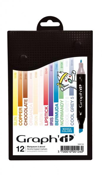 Набор маркеров "Graph IT" 12шт Manga пенал основные цвета полупрозрачные