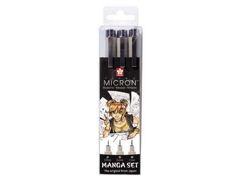 Набор капилярных ручек Pigma Micron Manga 3шт (0.1мм 0.5мм 0.8мм) Черный