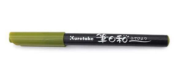 Ручка на водной основе, "Kuretake Fudebiyori" перо кисть Оливково-зеленый