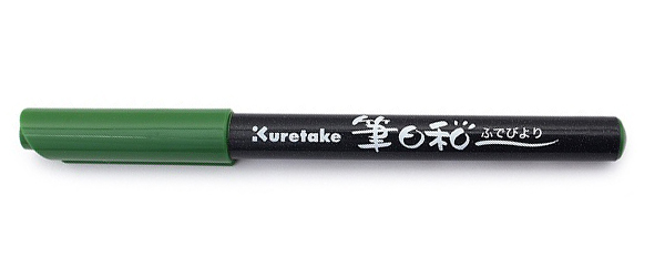 Ручка на водной основе, "Kuretake Fudebiyori" перо кисть Глубокий зеленый