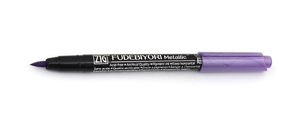 Ручка на водной основе, "Kuretake Fudebiyori" перо кисть Metallic Фиолетовый металлический оттенок