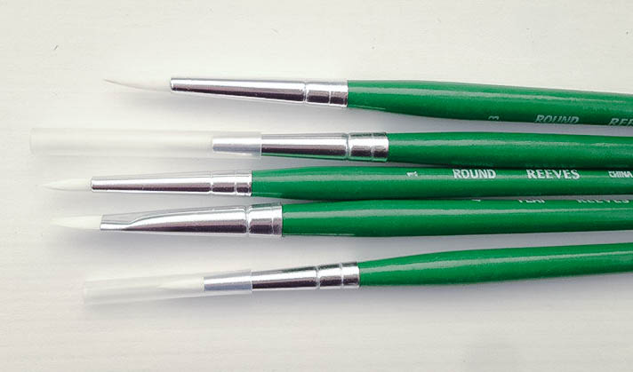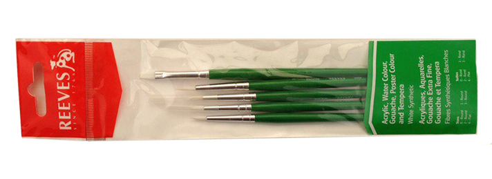 Кисти, белая синтетика (для акрила, акварели, гуаши, постерных красок, темперы), 5 шт., круглые №0,1,2,3 ; плоская № 4, в блистере