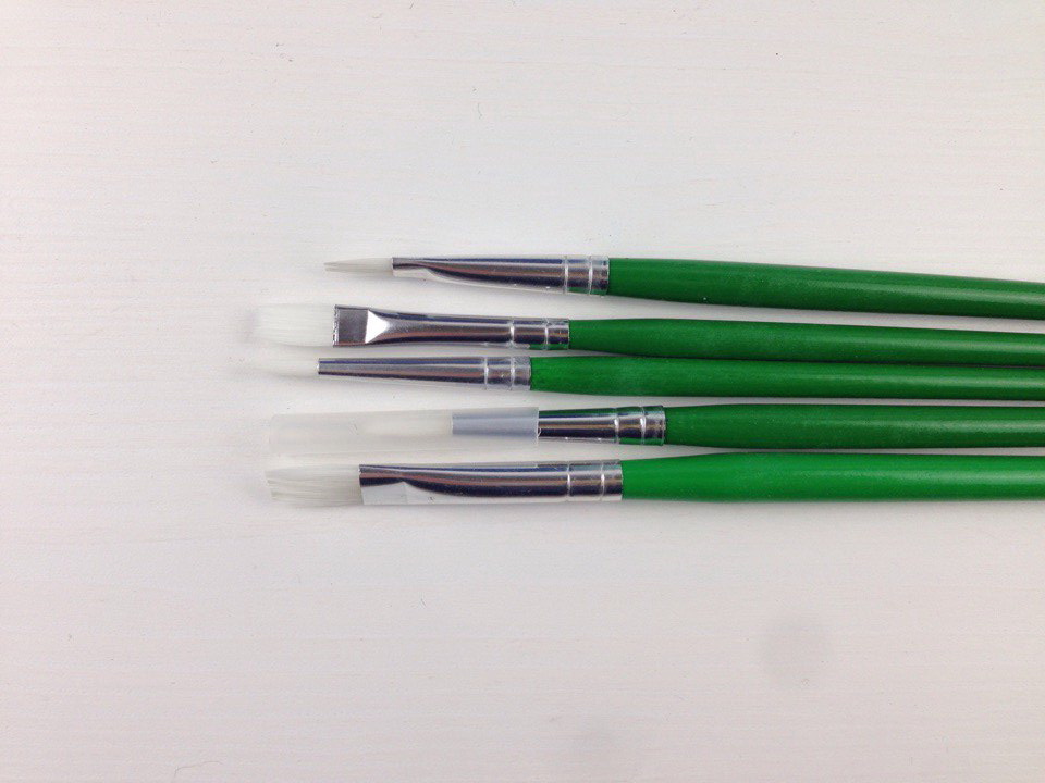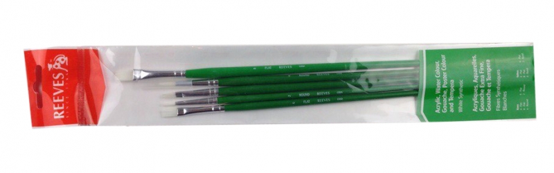 Кисти, белая синтетика (для акрила, акварели, гуаши, постерных красок, темперы), 5 шт., круглые№ 2, 4 ; плоские № 4,6,8, в блистере