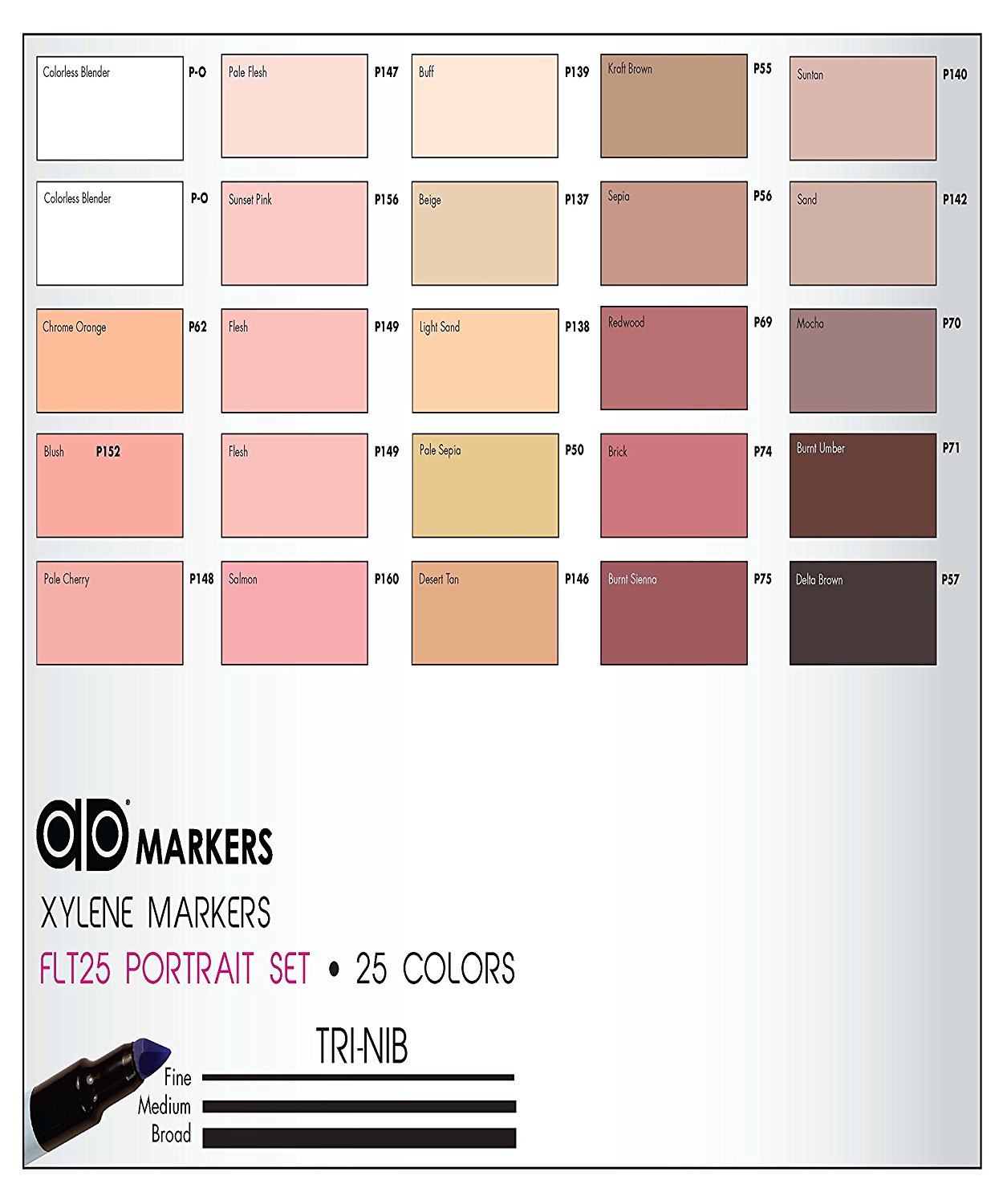 Маркеры Chartpak AD Markers отлично подойдут для дизайнеров за счет большого количества цветов, стойких чернил и удобного пера. Маркеры Chartpak AD Markers производятся в США. Перманентные чернила на основе растворителя, водостойкие. Универсальная форма пера маркера позволяет рисовать как тонкие, так широкие линии. Покрывные характеристики маркеров AD Marker более чем в 2 раза выше чем у обычных маркеров. Полная палитра цветов включает в себя 130 стойких, натуральных оттенков. У каждого цвета есть маркировка, номера цветов соответствуют номерам цветов в формате CMYK.