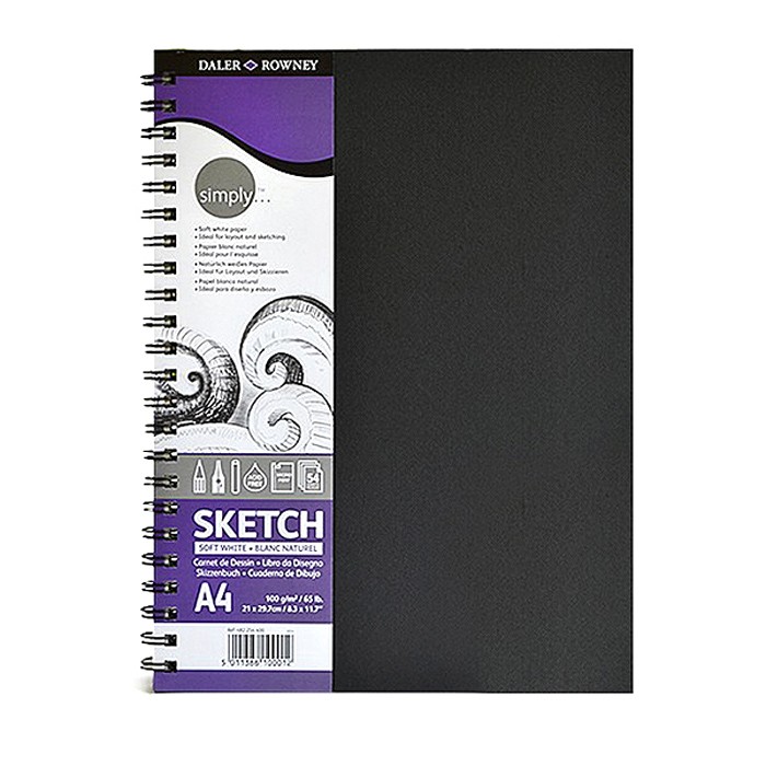 Скетчбук Daler Rowney "Simply", на спирали с микроперфорацией 100 г/м2 54 листа А4