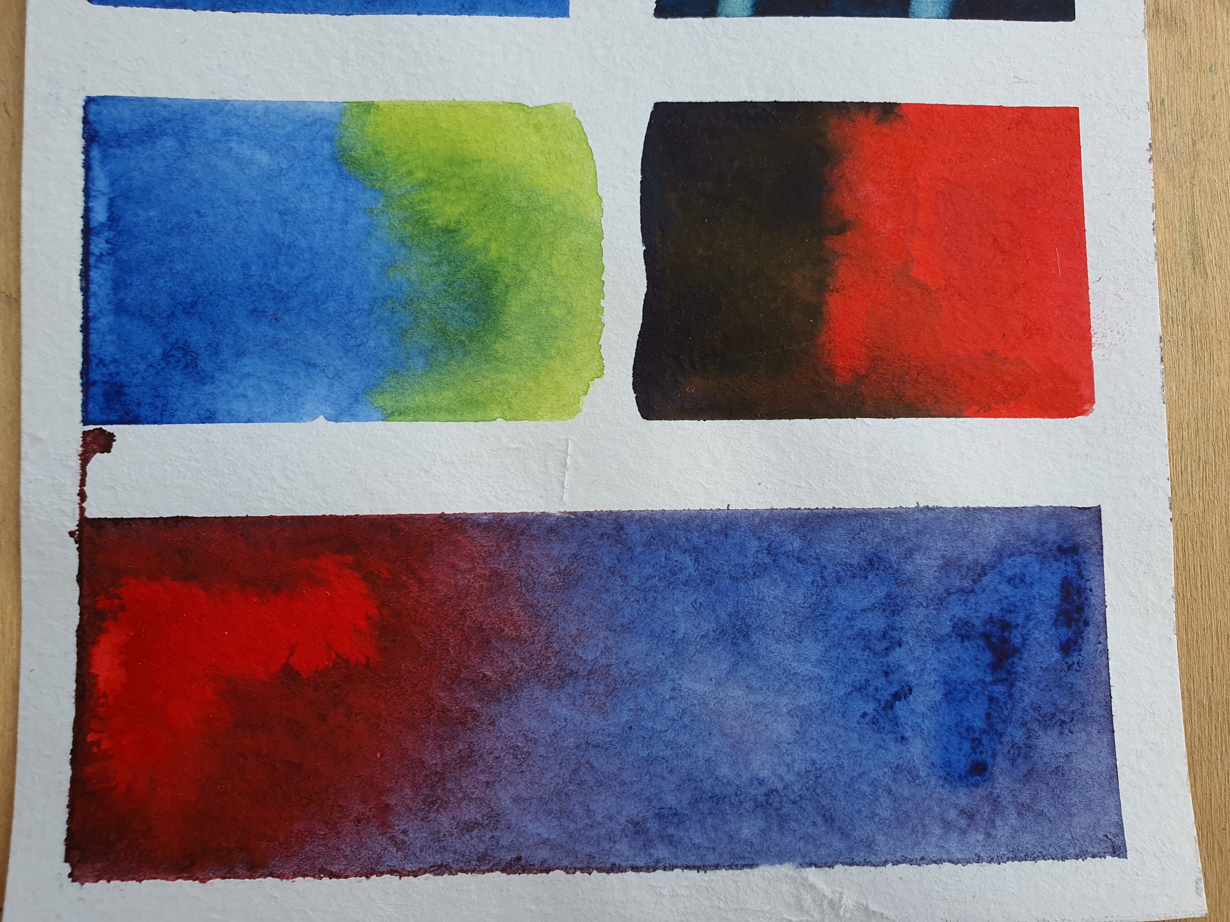 В ещё влажном виде результат казался катастрофой: затекание под скотч, вспухивание бумаги, образование луж, пигменты словно сражались друг с другом, краска, словно скатывалась с поверхности и её несло хаотично.