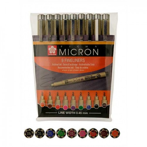 Набор капиллярных ручек Sakura "Pigma Micron" 9 цветов (0.45мм)