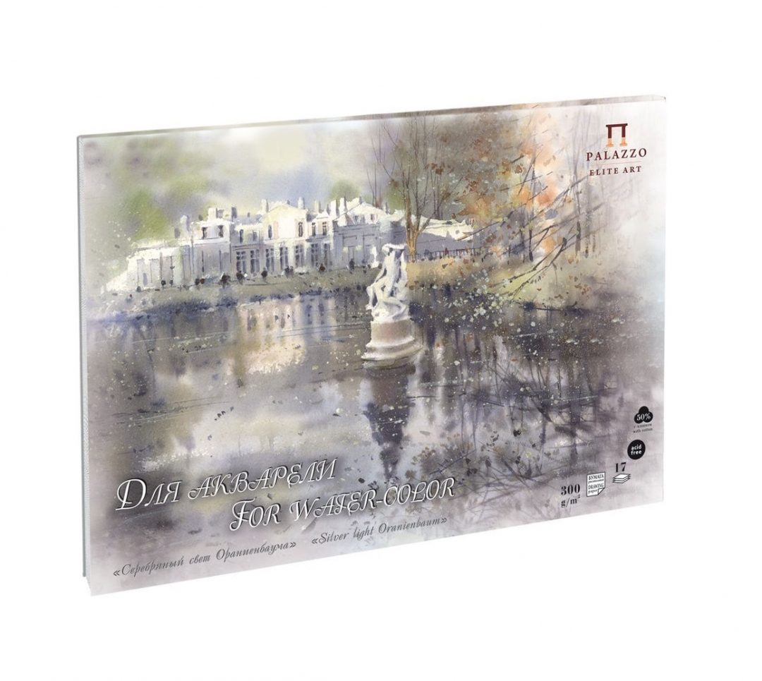 Планшет для акварели "Серебряный свет Ораниенбаума" 297*420, 300 гр с 50% хлопка 17 листов.