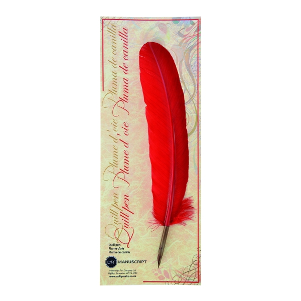 Большое гусиное перо для каллиграфии (27-30 см). Доступные цвета: золотой, оранжевый, зеленый, темно-красный, слоновая кость, темно-синий, бургунди. Бронзовый наконечник, бронзовое перо Drawing Nib (DP25). Блистер, размер: 12,7x34,5x0,8 см.