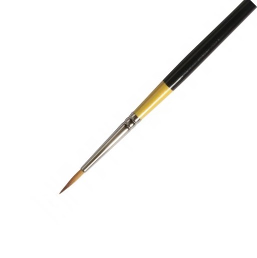Кисть круглая из упругого синтетического волоса. Кисть для прорисовки мелких деталей. Прорисовки фигур и овальных форм. Короткая ручка, алюминиевая обойма.
