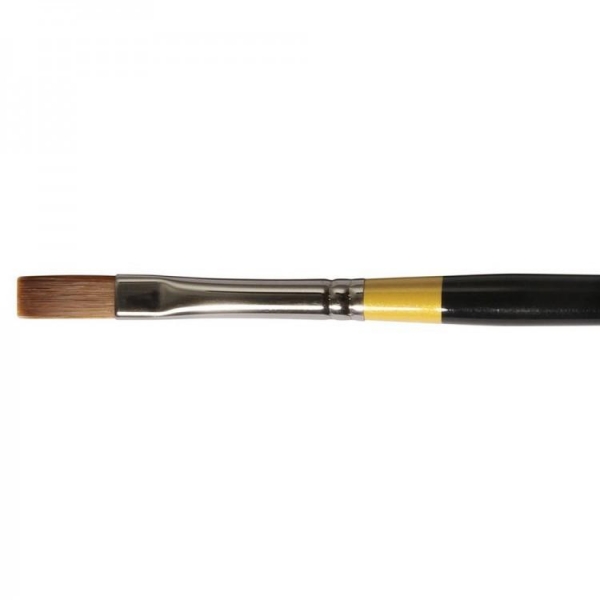 Кисть плоская с удлиненной выставкой из жесткого синтетического волоса. Используется для прорисовки прямых линий и прямоугольных форм. Длинная ручка, алюминиевая обойма.