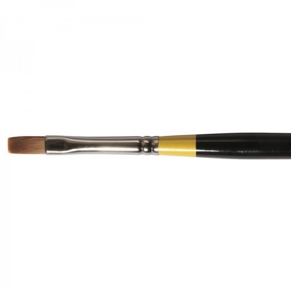 Кисть плоская с удлиненной выставкой из жесткого синтетического волоса. Используется для прорисовки прямых линий и прямоугольных форм. Длинная ручка, алюминиевая обойма.
