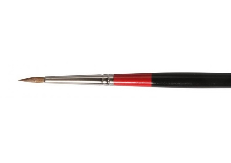 Кисть круглая из натурального соболиного волоса. Используется для нанесения фона, оттенков, выполнения основного объема живописной работы. Короткая ручка, алюминиевая обойма.