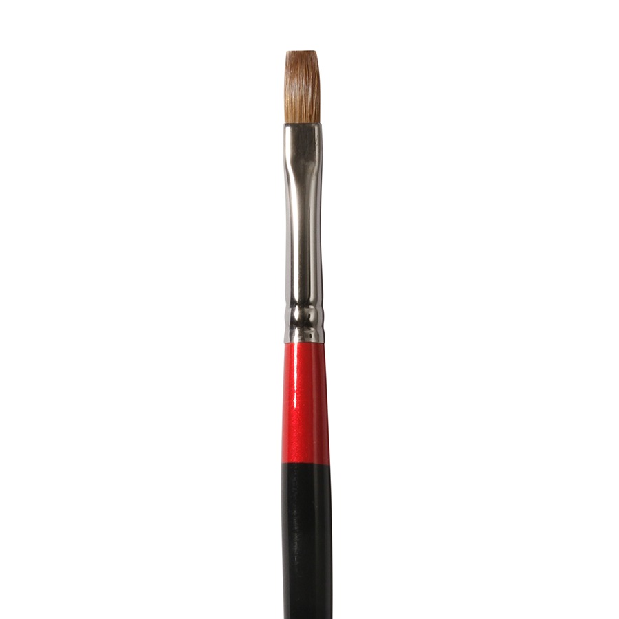 Кисть плоская из натурального соболиного волоса. Используется для прорисовки прямых линий и прямоугольных форм. Длинная ручка, алюминиевая обойма.