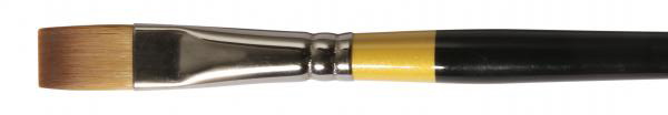 Кисть плоская с укороченой выставкой из упругого рыжего синтетического волоса. Используется для прорисовки прямых линий и прямоугольных форм. Короткая ручка, алюминиевая обойма.