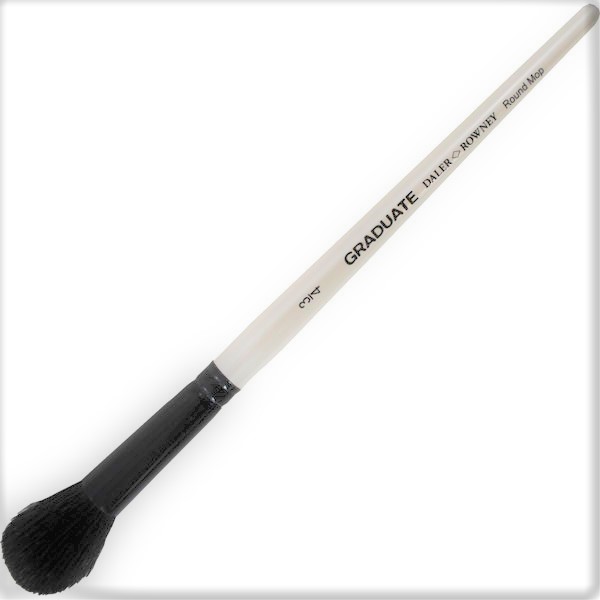Кисть круглая из натурального волоса черной козы. Используется для нанесения фона, оттенков, выполнения основного объема живописной работы. Короткая ручка, алюминиевая обойма.