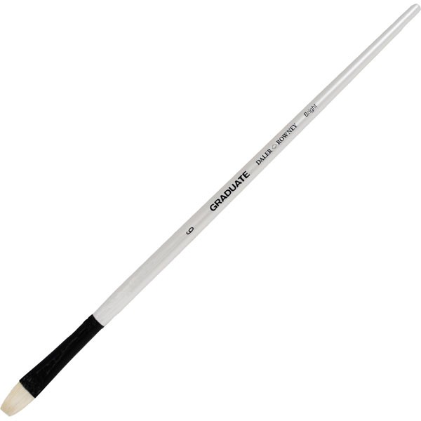 Кисть плоская из натуральной щетины. Используется для прорисовки прямых линий и прямоугольных форм. Длинная ручка, алюминиевая обойма.