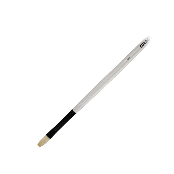 Кисть плоская с удлиненной выставкой из натуральной щетины. Используется для прорисовки прямых линий и прямоугольных форм. Длинная ручка, алюминиевая обойма.