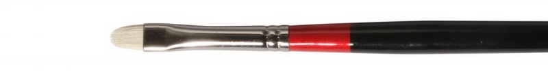 Кисть овальная (кошачий язык) с укороченой выставкой из натуральной щетины. Используется для прорисовки фигур и овальных форм, выполнения короткого округлого мазка. Длинная ручка, алюминиевая обойма.