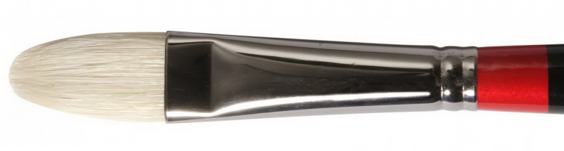 Кисть овальная (кошачий язык) из натуральной щетины. Используется для прорисовки фигур и овальных форм, выполнения короткого округлого мазка. Длинная ручка, алюминиевая обойма.