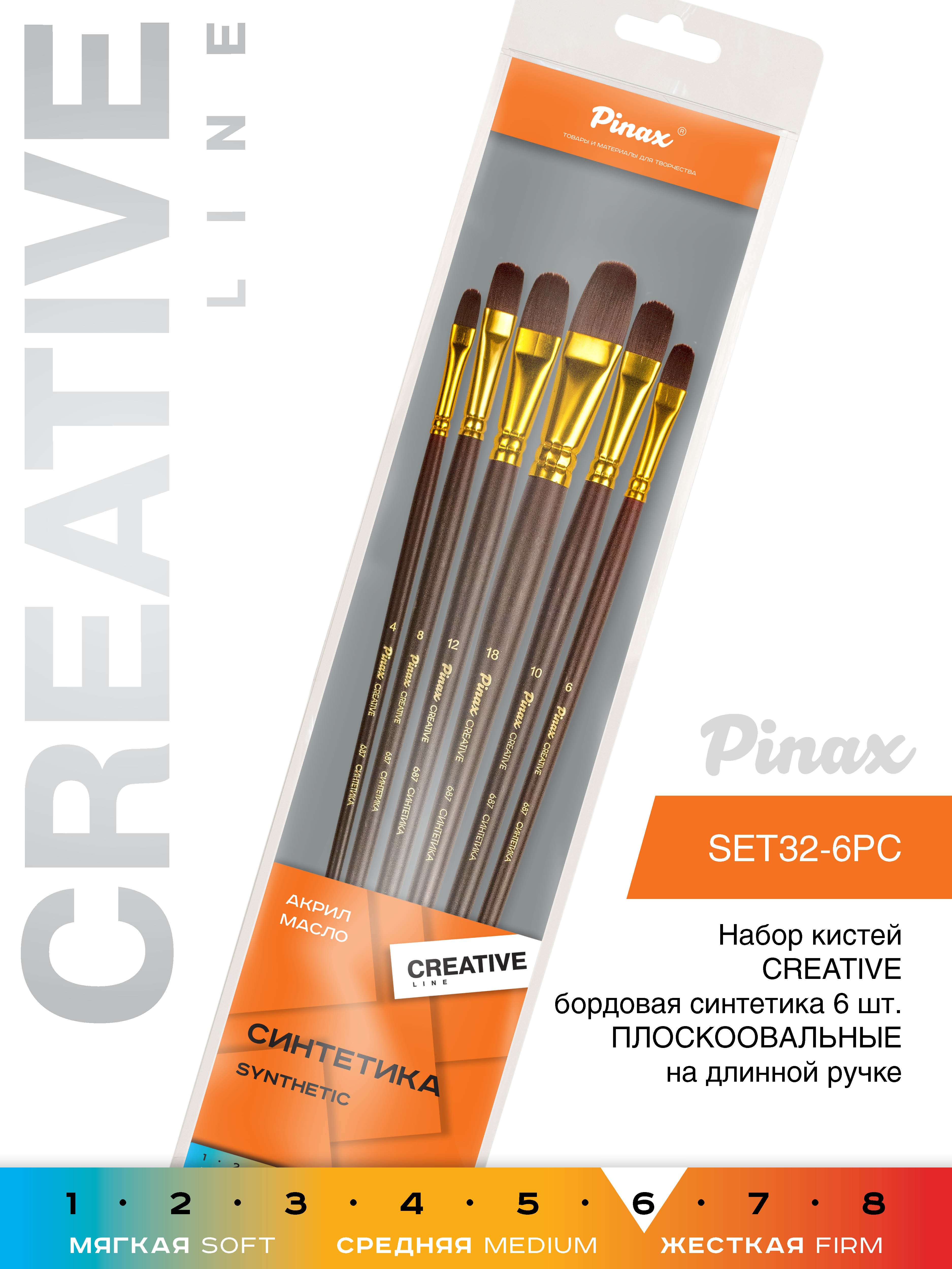 Набор кистей CREATIVE бордовая синтетика (длинная ручка) 6 шт., плоскоовальная, 6 шт.
