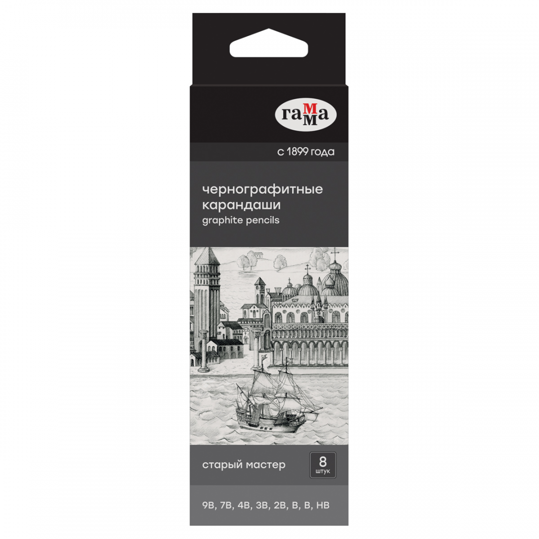 Набор чернографитных карандашей ГАММА серии «Старый мастер» предназначен для рисования, скетчинга и детальных прорисовок.