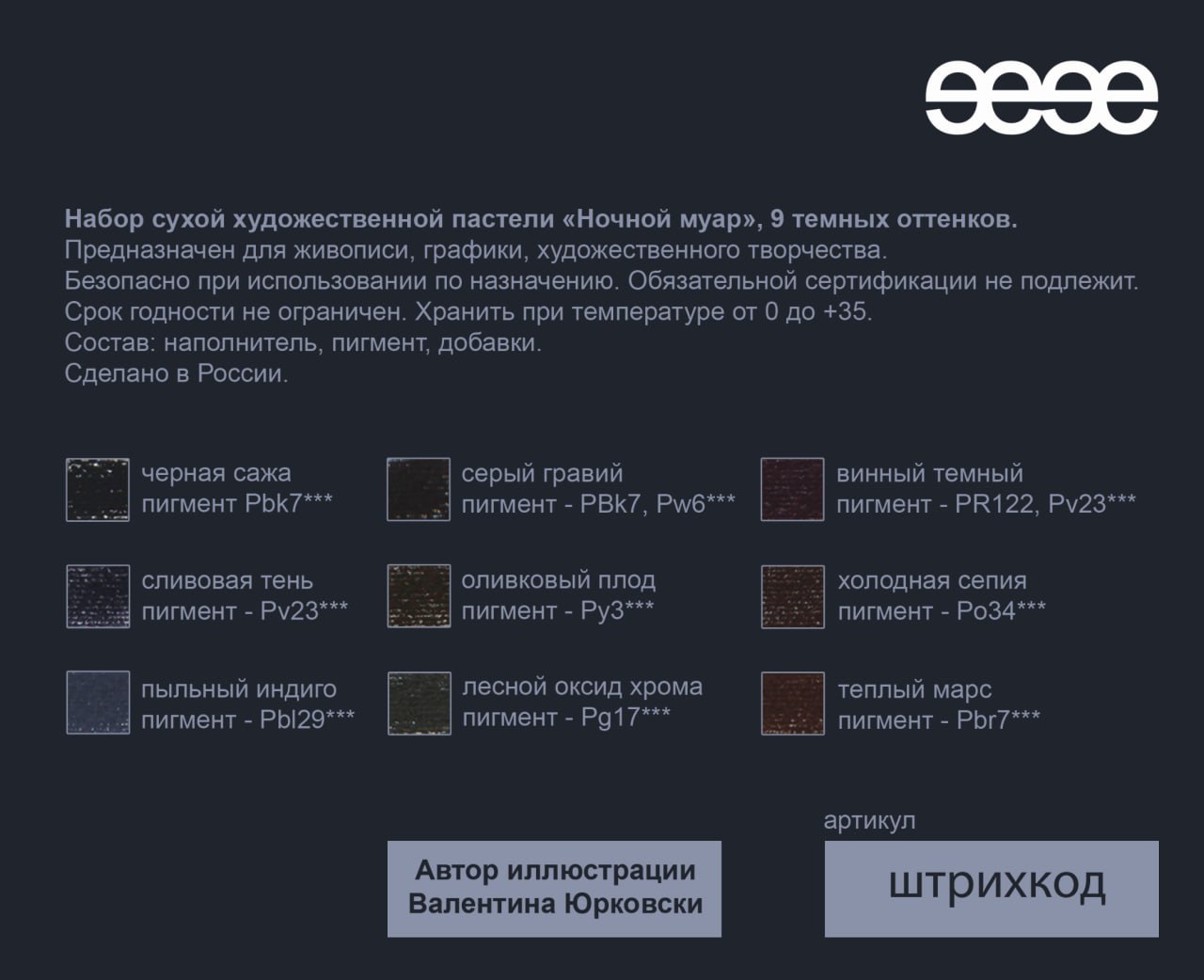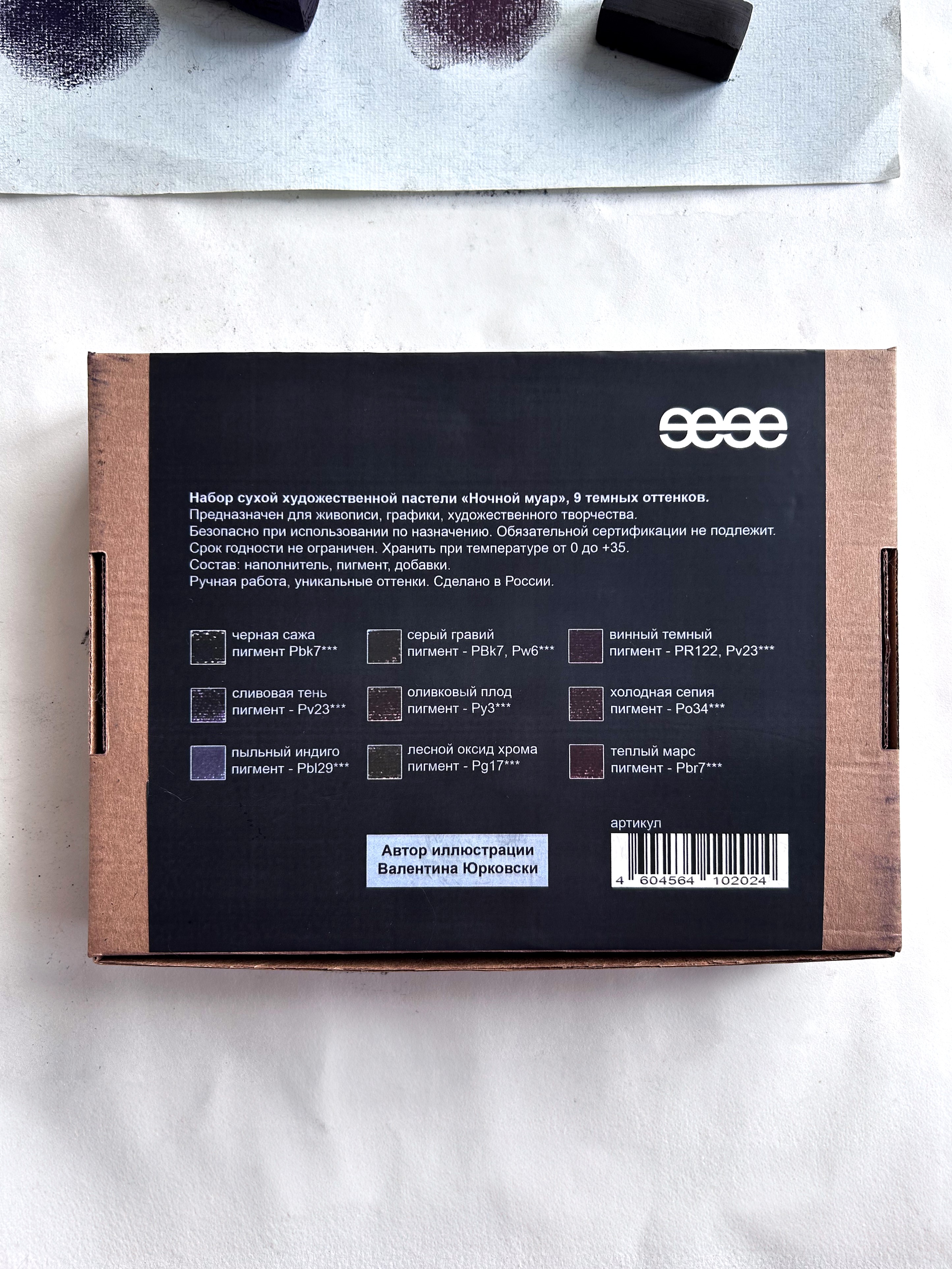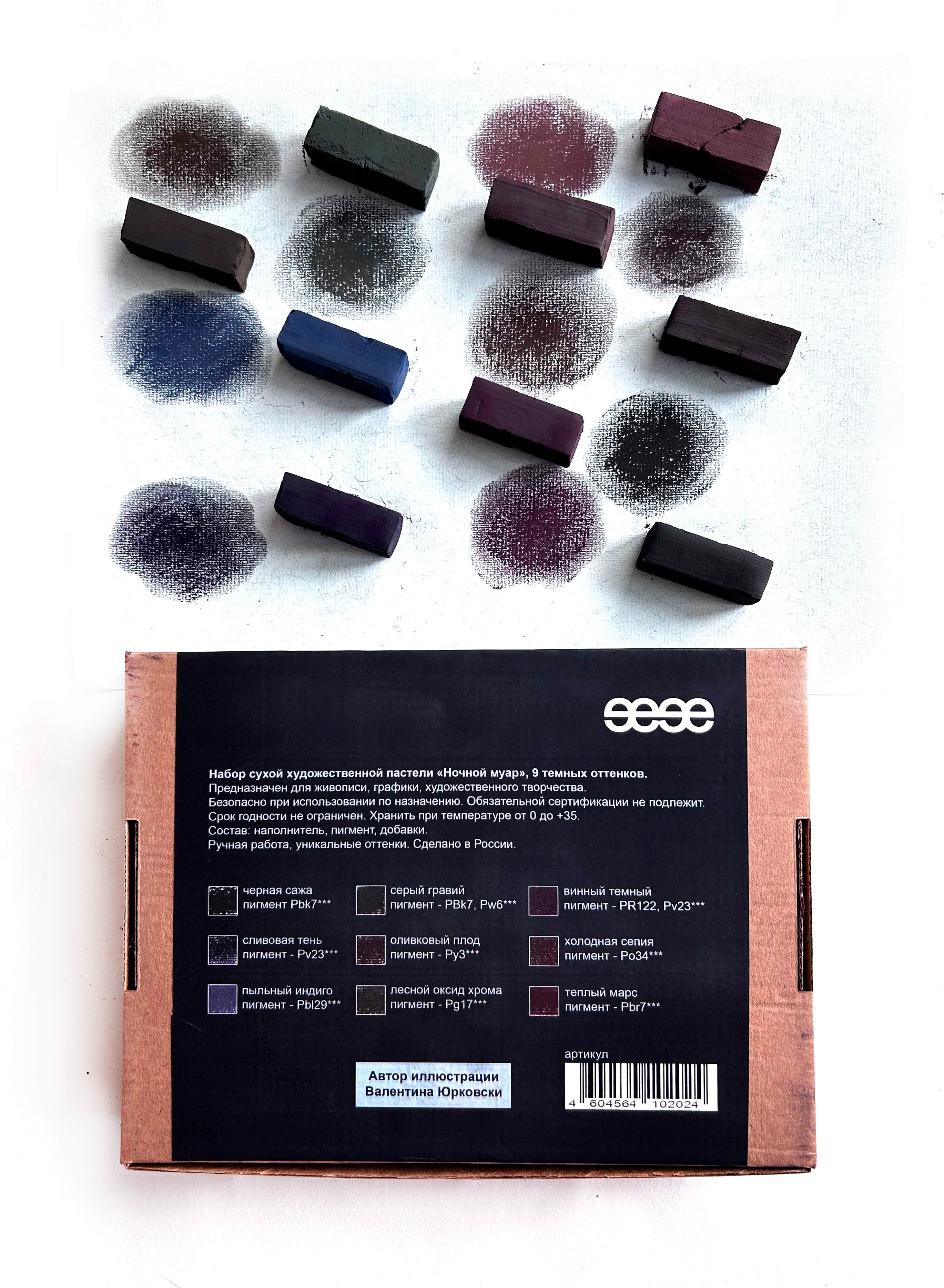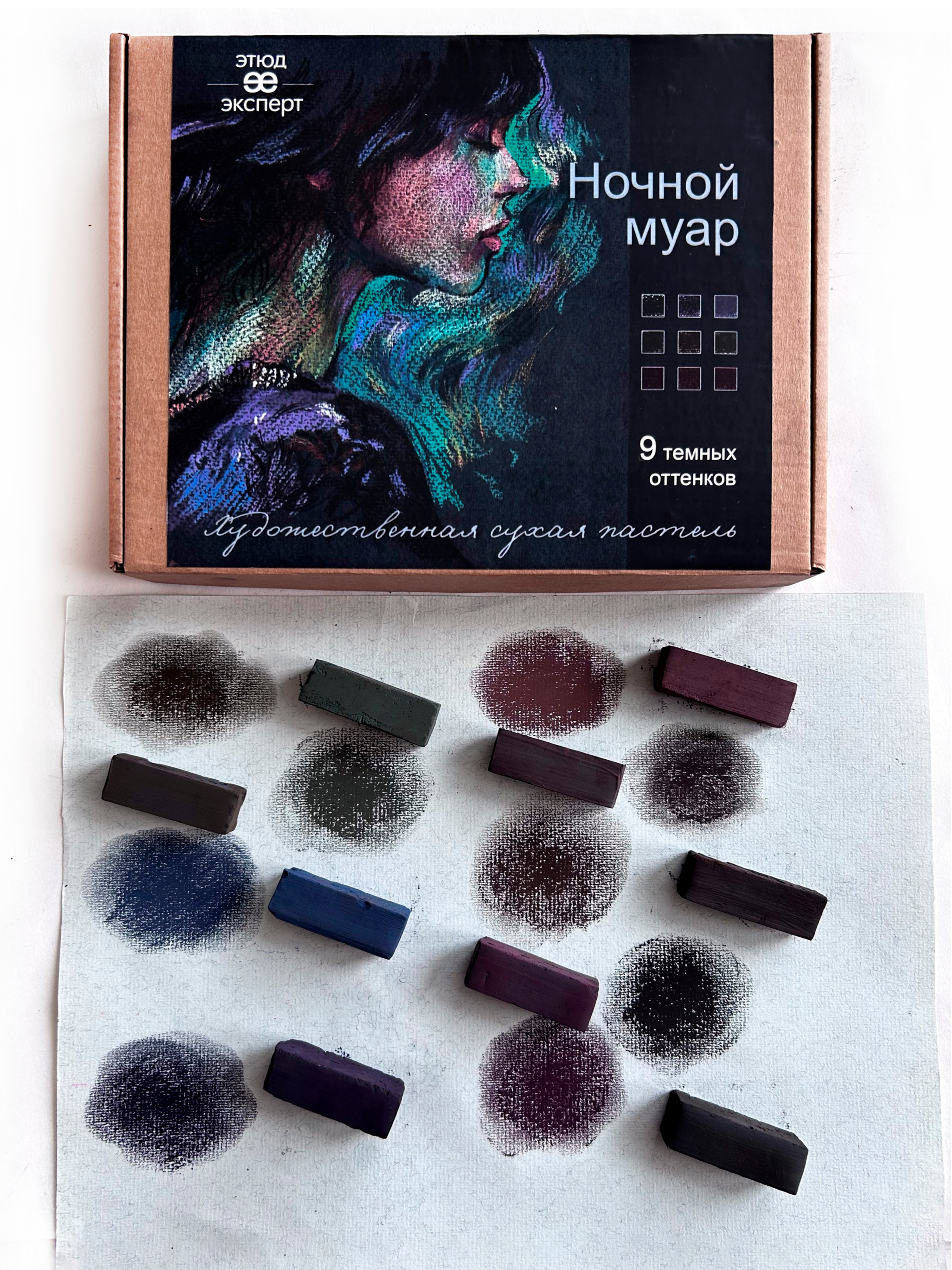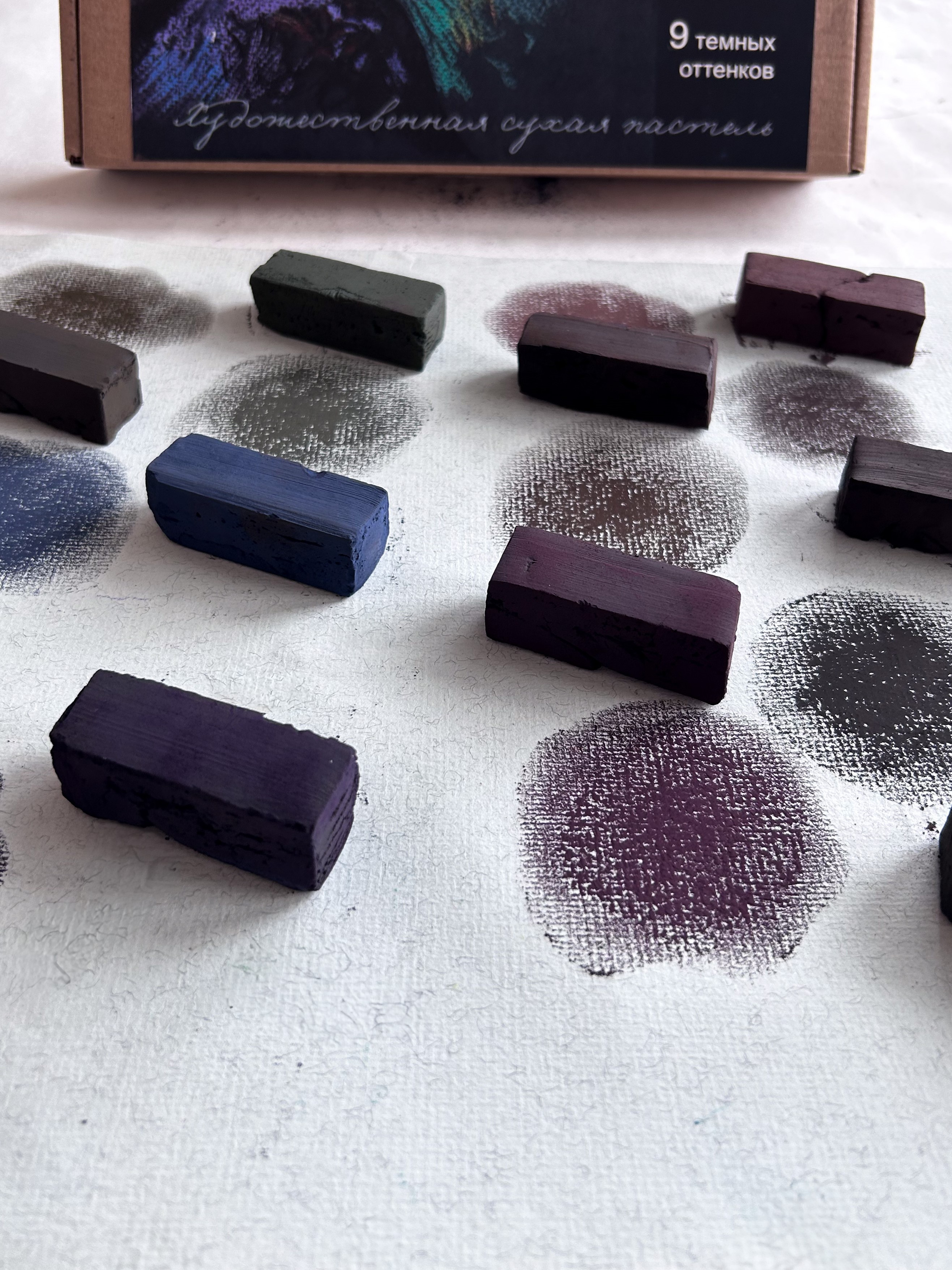 Набор сухой художественной пастели «Ночной муар», 9 темных оттенков предназначен для живописи, графики, художественного творчества.