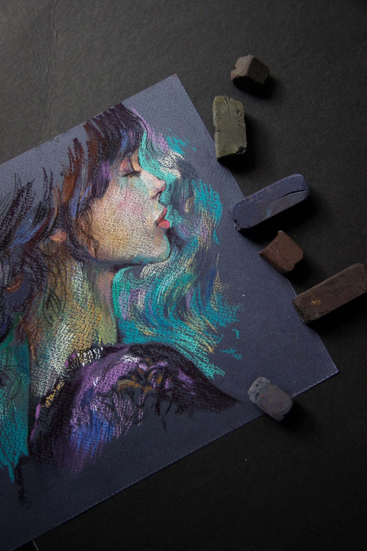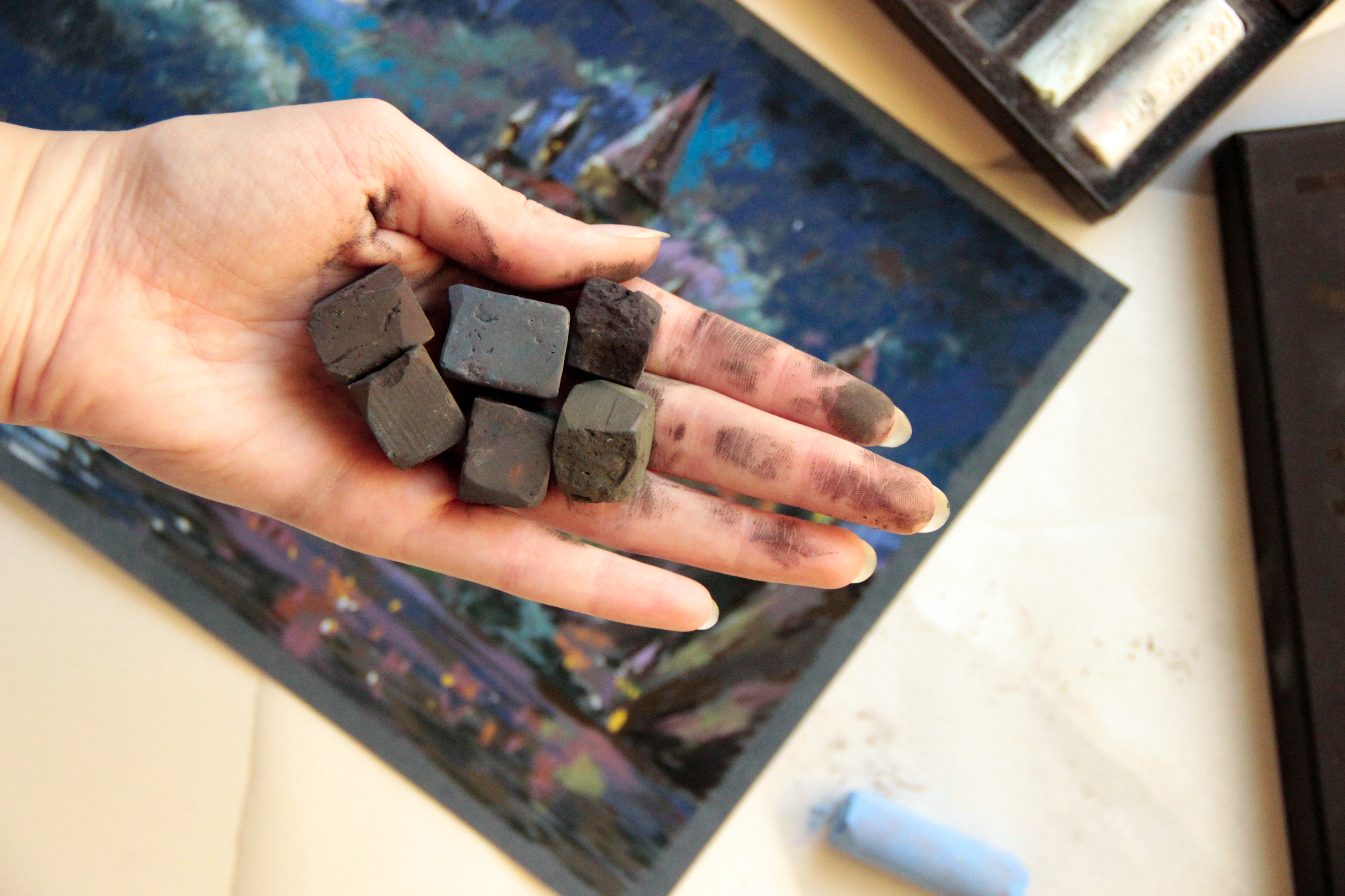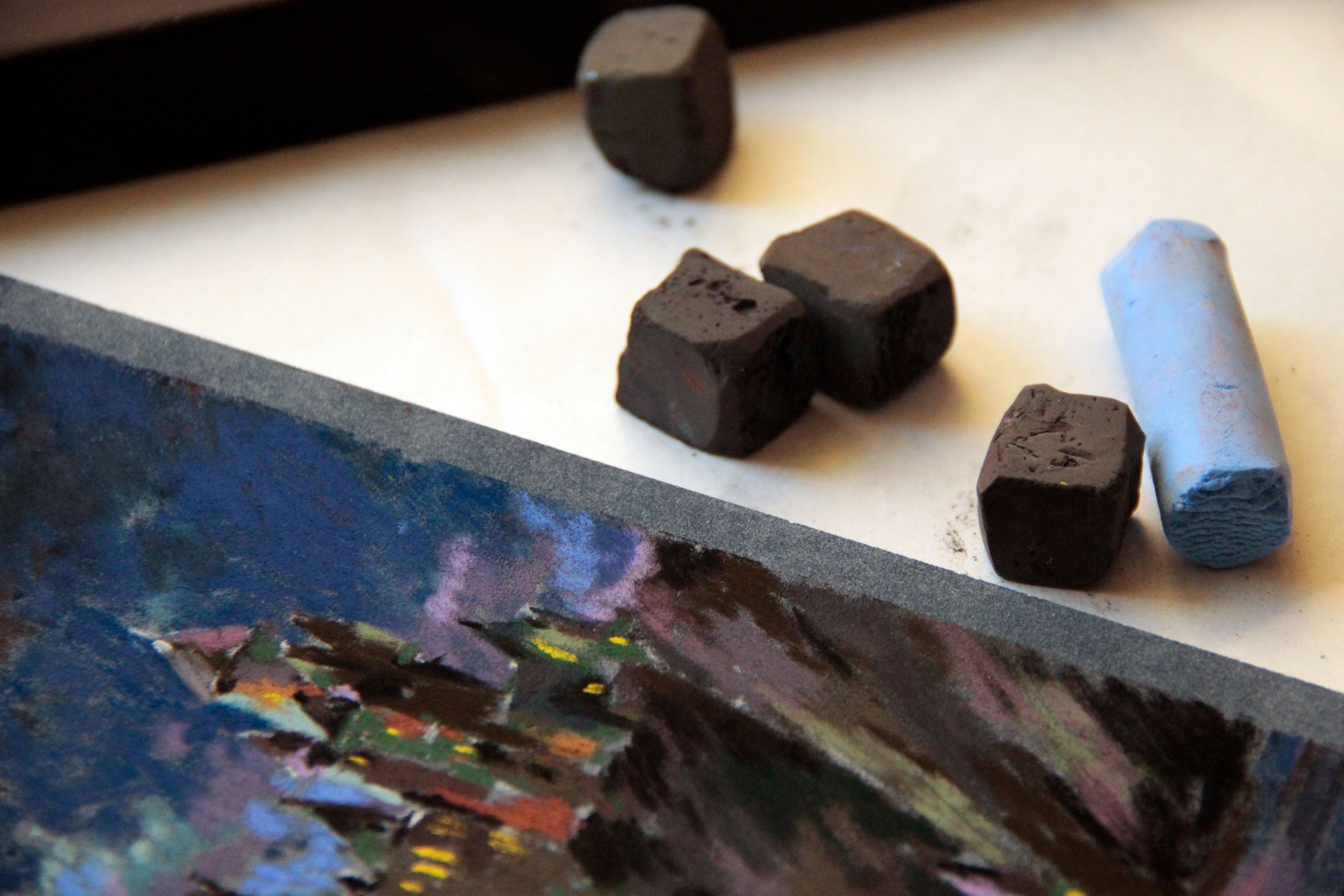Штрих лёгкий, пастель легко тушуется пальцем.