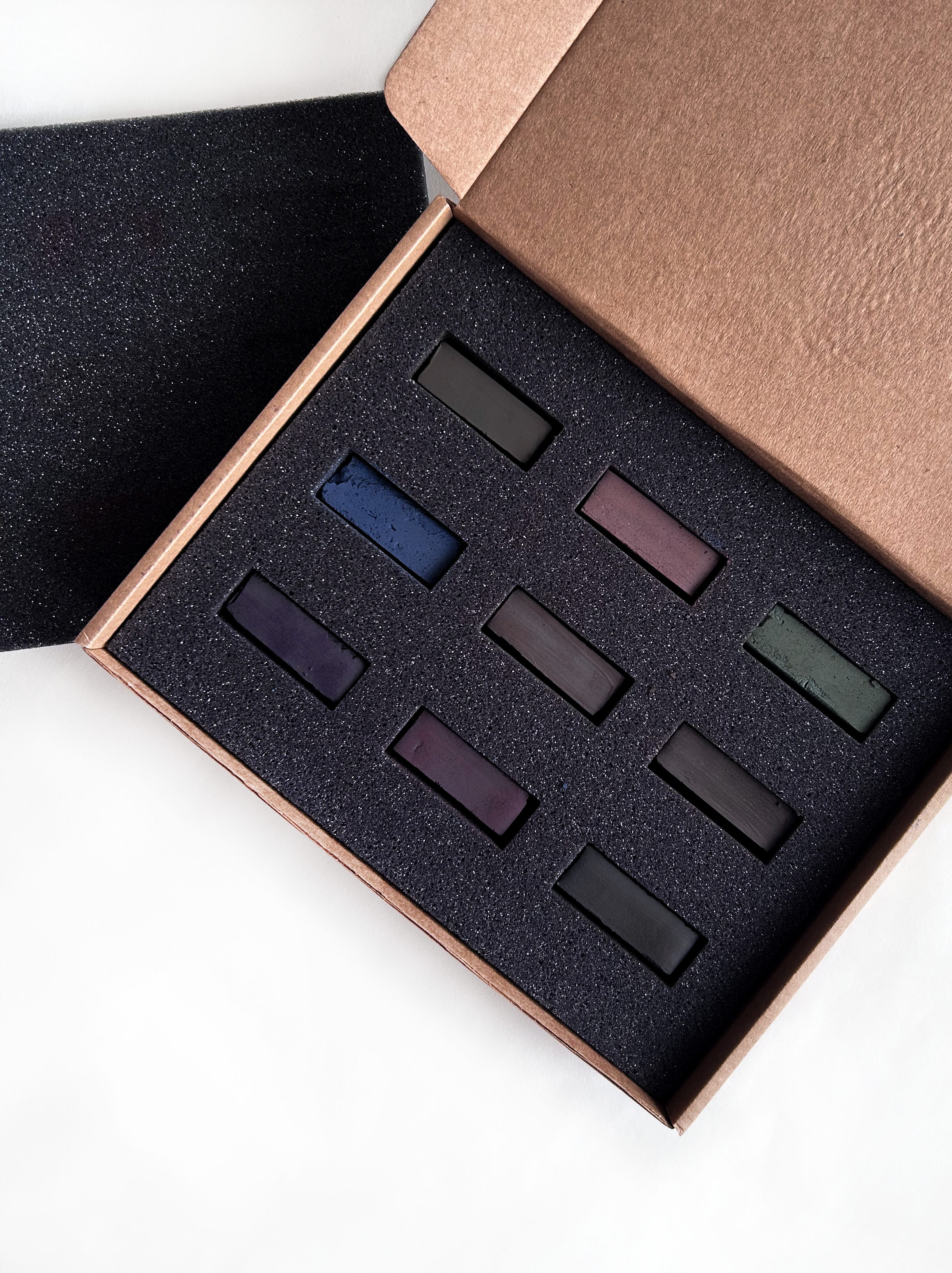 Художественная сухая пастель "Ночной Муар", 9 темных оттенков