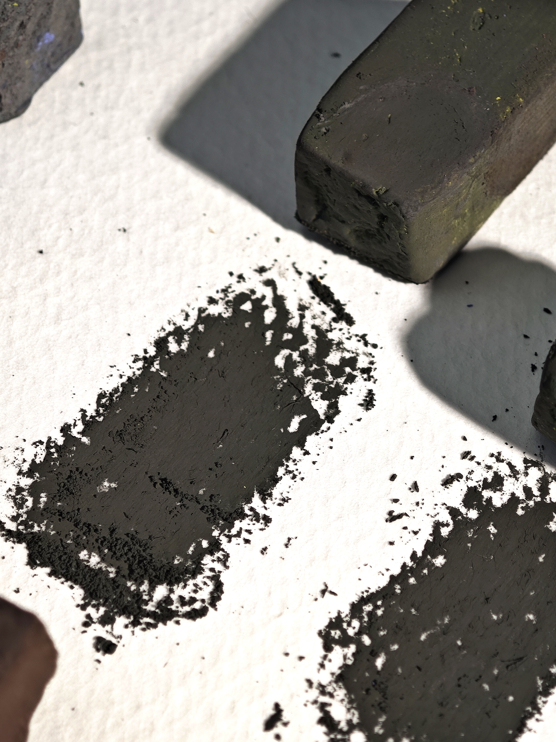Крупные мелки прекрасно ложатся в руку, разделяются на кусочки, а благодаря граням мелка легко выводить тонкие линии, или наносить мазки плашмя.