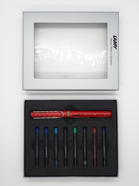 Комплект из ручки перьевой "Safari", F, Красный+Картр. ассорт. 8 шт.