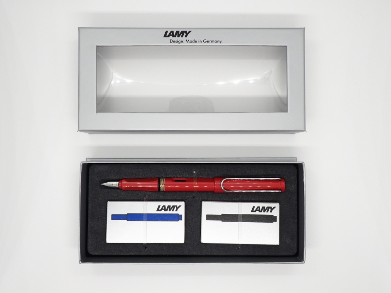Комплект из ручки перьевой Лами "Safari", F, Красный+Картр. син+черн.